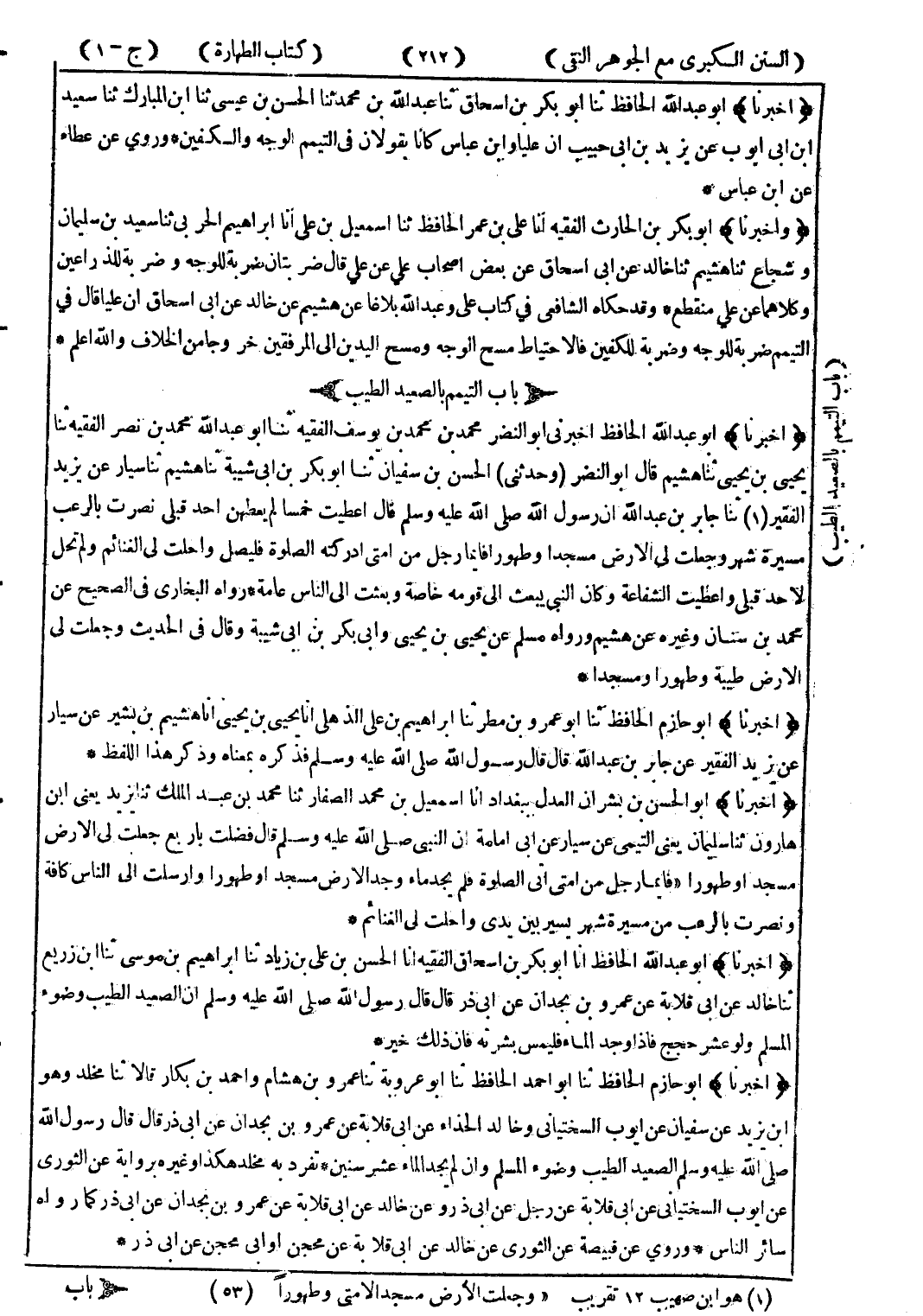 (1) هو ابن صهيب 12 تقريب " وجعلت الارض مسجدا الامتى وطهورا (53) (*)