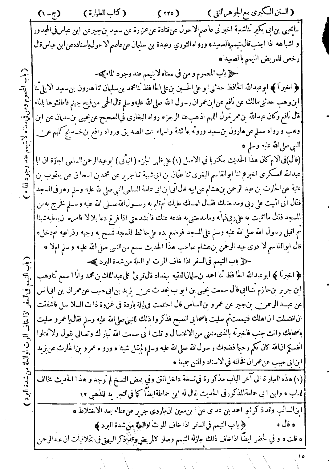 * قال * (باب التيمم في السفر إذا خاف الموت أو العلة من شدة البرد) * قلت * وفي الحضر ايضا إذا خاف ذلك جاز له التيمم وصار كالمريض وقد ذكر البيهقى في الخلافيات ان عبد الرحمن