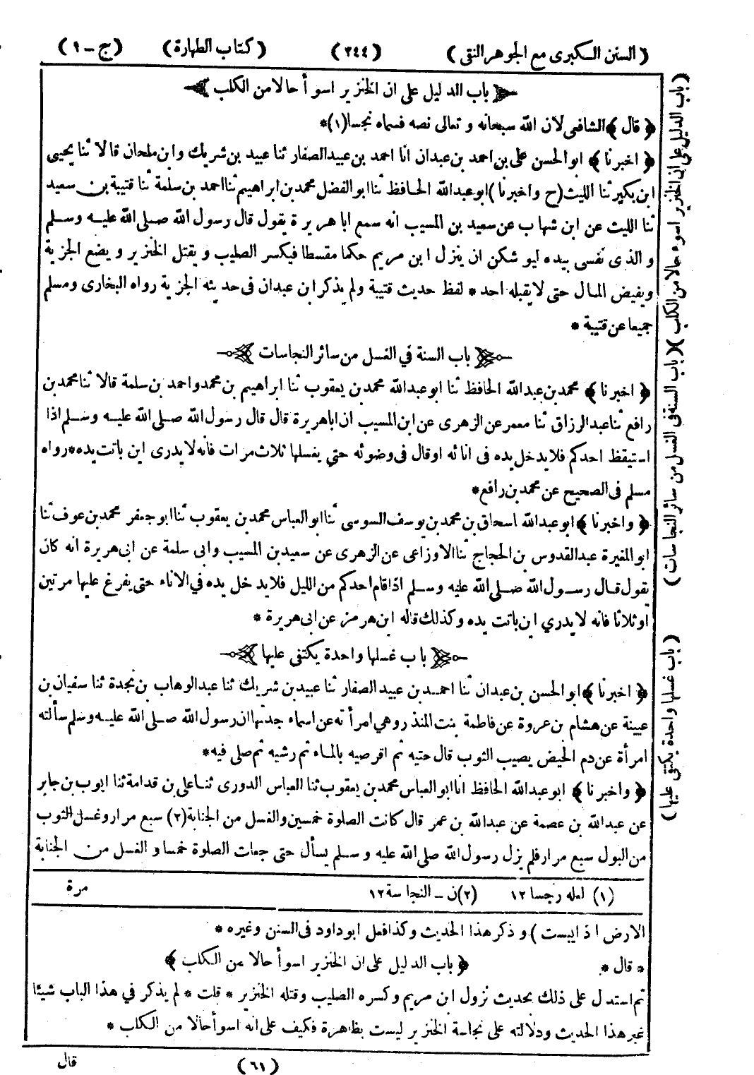 الارض إذ ايبست) وذكر هذا الحديث وكذا فعل أبو داود في السنن وغيره * * قال * (باب الدليل على ان الخنزير اسوأ حالا من الكلب) ثم استدل على ذلك بحديث نزلوا ابن مريم وكسره الصليب وقتله الخنزير * قلت * لم يذكر في هذا الباب شيئا غير هذا الحديث ولالته على نجاسة الخنزير ليست بظاهرة فكيف على انه اسوأ حالا من الكلب *