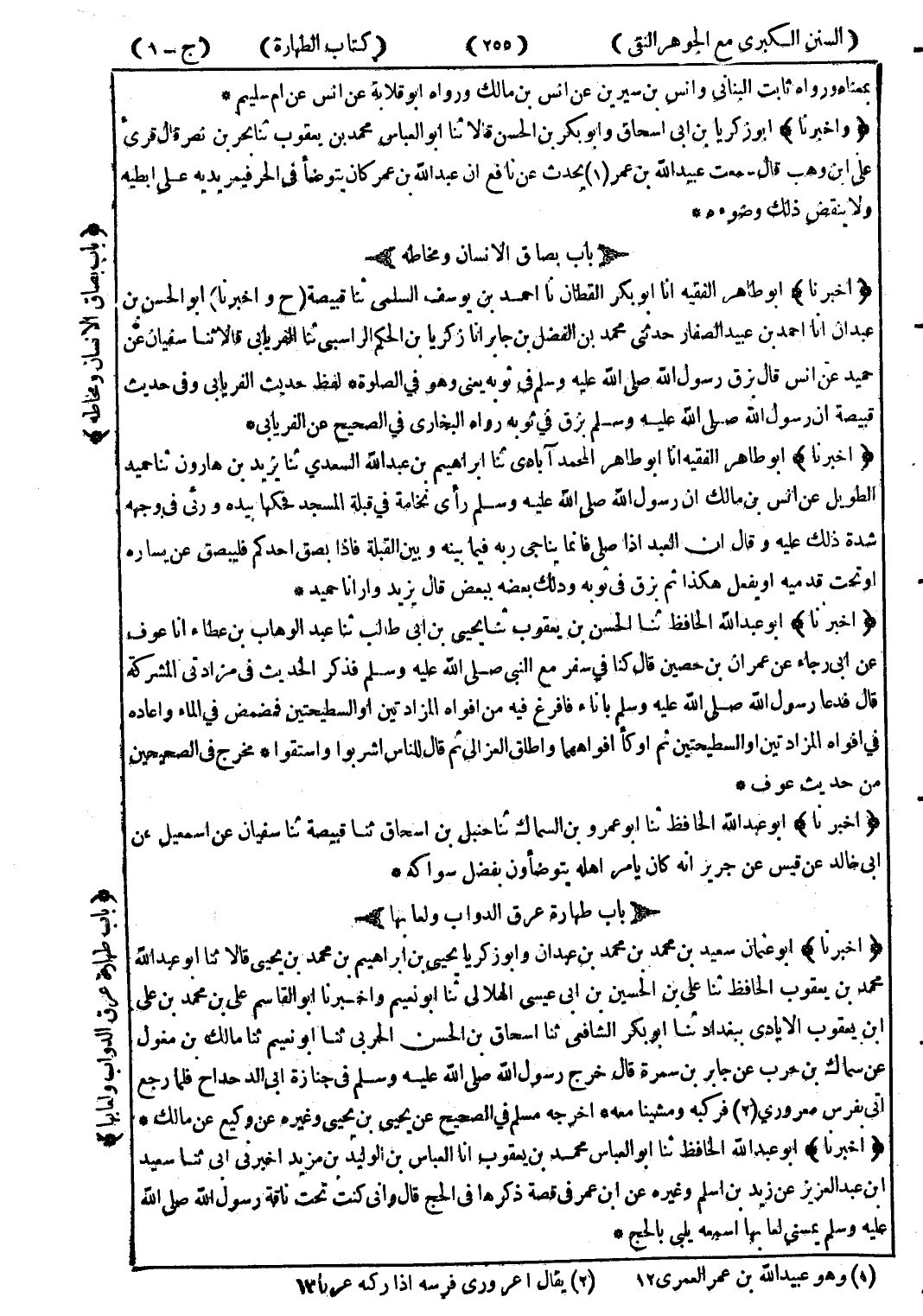 (وأخبرنا) أبو زكريا بن أبي اسحاق وأبو بكر بن الحسن قالا ثنا أبو العباس محمد بن يعقوب ثنا بحر بن نصر قال قرئ على ابن وهب قال سمعت عبيدالله بن عمر (1) يحدث نافع ان عبد الله بن عمر كان يتوضأ في الحر فيمر يديه على ابطيه ولا ينقض ذلك وضوءه.