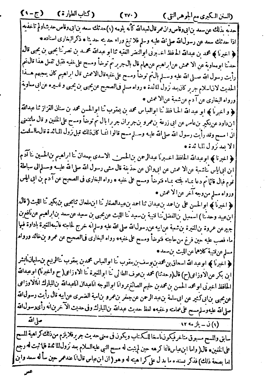 سابق والمسح مسبوق متناخر فيكون ناسخا للكتاب ويكون في معنى حديث جرير فلا يلزم من ذلك كراهية المسح على الخفين * قال (واما ابن عباس فانما كرهه حين لم يثبت له مسح النبي عليه السلام بعد نزول المائدة فلما ثبت له رجع اما بصحة ذلك) فذكر بسنده ما يدل على كراهيته له هو (ان عباس قال انا عند عمر حين سأله سعد وابن