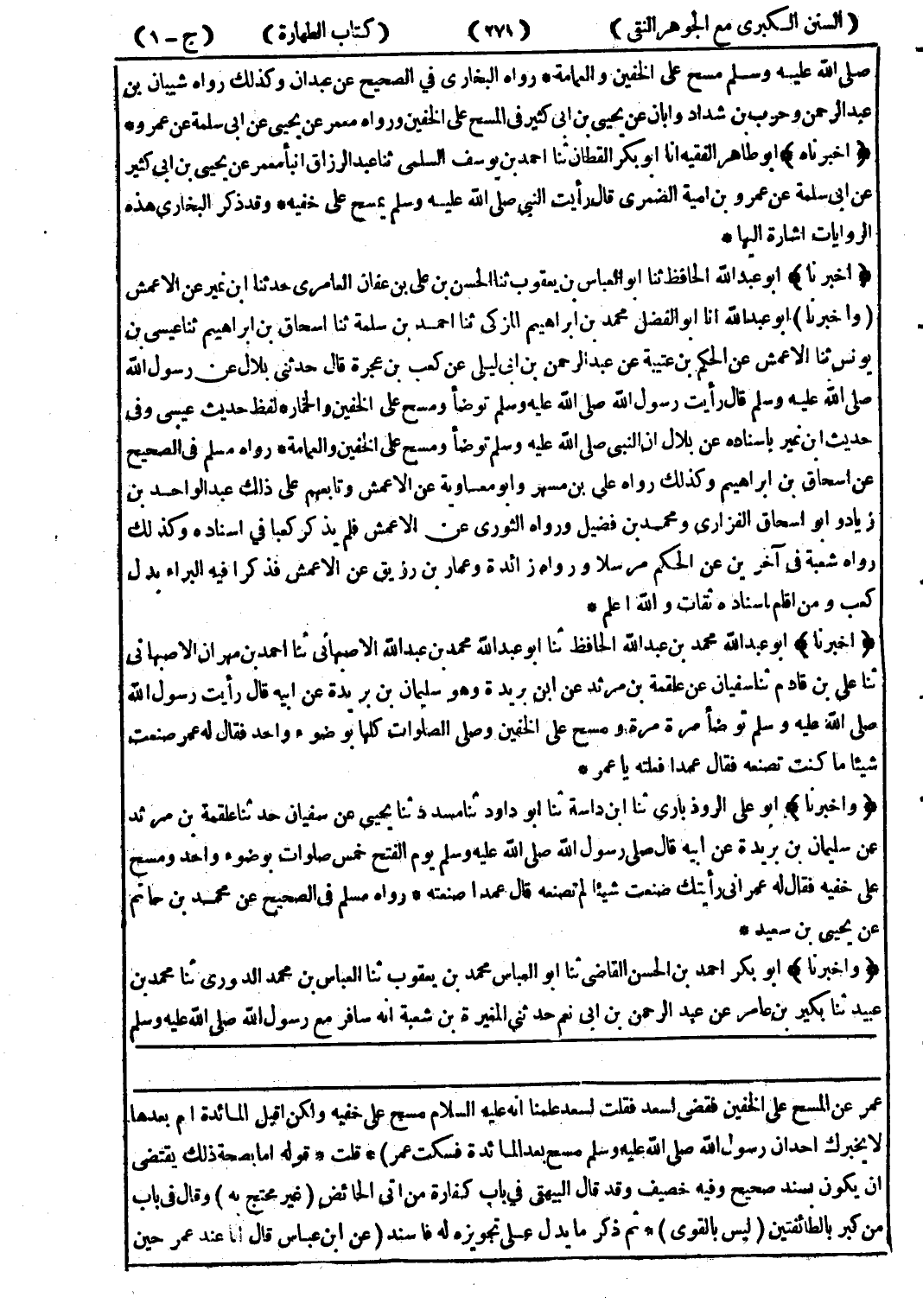 عمر عن السمح عن الخفين فقضى لسعد فقلت لسعد علمنا انه عليه السلام مسح على خفيه ولكن اقبل المائدة ام بعدها لا يخبرك احدان رسول الله صلى الله عليه وسلم مسح بعد المائدة فكست عمر) * قلت * قوله اما بصحة ذلك يقتضى ان يكون بسند صحيح وفيه خصيف وقد قال البيهقى في باب كفارة من اتى الخائض (غير محتج به) وقال في باب من كبر بالطائفتين (ليس بالقوى) * ثم ذكر ما يدل على تجويزه له فاسند (عن ابن عباس قال انا عند عمر حين