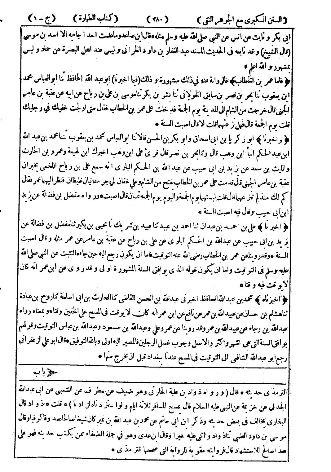 الترمذي حديثه * قال (ورواه ذواد بن علبة الحارثى وهو ضعيف عن مطرف عن الشعبى عن ابى عبد الله الجدلي عن خزيمة عن النبي صلى الله عليه السلام قال يمسح المسافر ثلاثة ابام ولو استزرده ناه لزادنا) * قلت * ذواد قال البخاري يخالف في بعض حديثه وذكر ابن ابى حاتم عن محمد بن عبد الله بن نمير كان شيخا صا الحاصد وقا كوفيا وقال موسى بن داود الضبى ثناذ واد اثنى عليه خيرا وقال ابن عدى وهو في جملة الضعفاء ممن يكن حديثه فهو على هذا صالح للاستشهاد قال فرروايته مقوية للرواية التى صححها الترمذي *