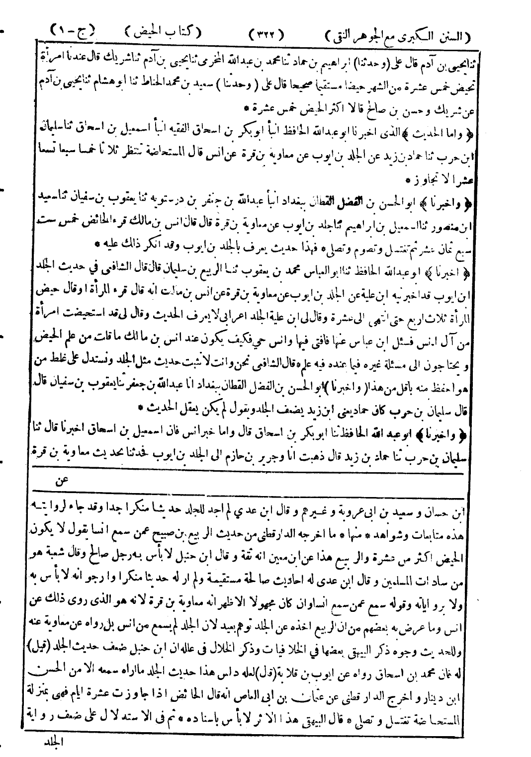 ابن حسان وسعيد بن ابى عروبة وغيرهم وقال ابن عدي لم اجد للجلد حديثا منكرا جدا وقد جاء لروايته هذه متابعات وشواهد * منها * ما اخرجه الدارقطني من حديث الربيع بن صبيح عمن سمع انسا يقول لا يكون الحيض اكثر من عشرة والربيع هذا عن ابن معين انه ثقة وقال ابن حنبل لا بأس به رجل صالح وقال شعبة هو من سادات المسلمين وقال ابن عدى له احاديث صالحة مستقيمة ولم ارله حديثا منكرا وارجو انه لا بأس به ولا برواية وقوله سمع عمن سمع انساوان كان مجهولا الاظهرانه معاوية بن قرة لانه هو الذى روى ذلك عن انس وما عرض به بعضهم من ان الربيع اخذه عن الجلد توهم بعيد لان الجلد لم يسمع من انس بل رواه عن معاوية عنه وللحديث وجوه ذكر البيهقى بعضها في الخلافيات وذكر الخلال في علله ابن حنبل شعف حديث الجلد (قيل) له فان محمد بن اسحاق رواه عن ايوب بن قلابة (قال) لعله دلس هذا حديث الجلد مااره سمعه الامن الحسن ابن دينار واخرج الدارقطني عن عثمان بنابى العاص انه قال الحائض ذا جاوزت عشرة ايام فهى بمنزلة