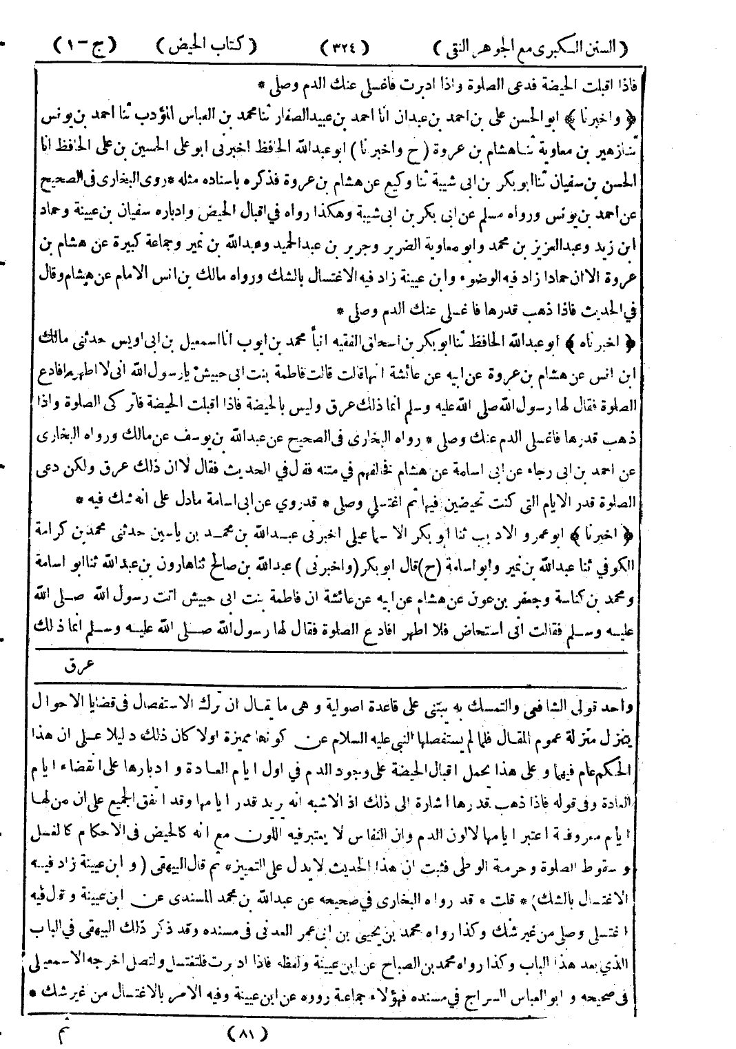 واحد قولى الشافعي والتمسك به يبتنى على قاعدة اصولية وهى ما يقال ان ترك الاستفصال في قضايا الاحوال يتنزل منزلة عمرم المقال فلما لم يستفصلها النبي عليه السلام عن كونها مميزة اولا كان ذلك دليلا على ان هذا الحكم عام فيهما وعلى هذا يحمل اقبال الحيضة على وجود الدم في اول ايام العادة وادبارها على انقضاء ايام العادة وفى قوله فإذا ذهب قدرها اشارة إلى ذلك إذا الاشبه انه يريد قدر ايامها وقد اتفق الجميع على ابن من لها ايام معروفة اعتبر ايامها لا لون الدم وان النفاس لا يعتبر فيه اللون مع ان كالحيض في الاحكام كالغسل وسقوط الصلوة وحرمة الوطى فثبت ان هذا الحديث لا يدل على التمييز * ثم قال البيهقى (وابن عيينة زاد فيه الاغتسال بالشك) * قلت * قد رواه البخاري في صحيحه عن عبد الله بن محمد بن المسندى عن ابن عيينة وقال فيه اغتسلي وصلى من غير شك وكذا رواه محمد بن يحيى بن ابى عمر والعدنى في مسنده وقد ذكر ذلك البيهقى في الباب الذي بعد هذا الباب وكذا رواه محمد بن الصباح عن ابن عيينة ولفظه فإذا ادبرت فلتغتسل ولتصل اخرجه الاسمعيلى