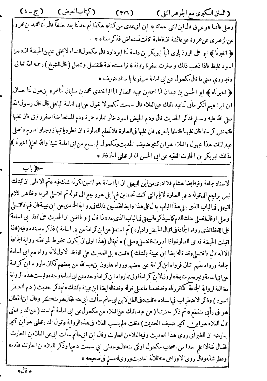 الاسناد جماعة وفيه ايضا هشام فلا ادرى من اين البيهقى ان ابا اسامة هو المعتين لكونه شك فيه * ثم الاظهر ان الشك ليس براجع إلى قوله دعى الصلوة الايام التى كنت تحيضين فيها بل هو راجع إلى قوله ثم اغتسلي لقربه وظاهر كلام البيهقى في الباب الذى يلى هذا الباب يدل على هذا وايضا فقد تبين ذلك في رواية الحميدى عن ابن عيينة فان فيها فاغتسلي وصلى أو قال غسلى عنك الدم كما سيذكره البيهقى في الباب الذى بعد هذا قال (وانا اظن ان الحديث على لفظ ابى اسامة على اللفظ الذى رواه الجماعة في اقبال الحيض وادباره) ثم اسند (عن ابن كرامة عن ابى اسامة) فذكره بسنده وفيه (فإذا اقبلت الحيضة فدعى الصلوة وإذا ادبرت فاغتسلي وصلى) * ثم قال (هذا اولى ان يكون محفوظا لموافقته رواية الجماعة