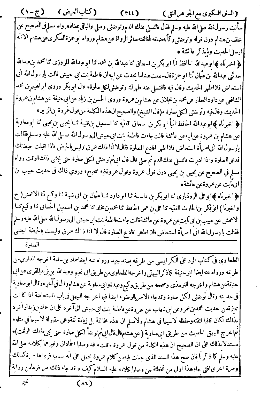 في حديثه وقال توضئى لكل صلوة وقد جاء الامر بالوضوء ايضا فيما اخرجه البيهقى في باب المستحاضة إذا كانت مميزة من حديث محمد بن عمرو عن ابن شهاب عن عروة عن فاطمة بنت ابى حبيش إلى آخره على ان حماد بن زيد لو انفرد بذلك لكان كافيا لثقته وحفظه لا سيما في هشام ولا نسلم ان هذه مخالفة بل زيادة ثقة وهى مقبولة لا سيما في مثله * ثم اخرج البيهقى الحديث من طريق ابى معاوية (عن هشام قال قال ابى ثم توضأ لكل صلوة حتى يجئ ذلك الوقت) * مستدلا بذلك على ان الصحيح ان هذه الكلمة من قول عروة * قلت * قد وصلها الحمادان وغيرهما بكلامه صلى الله عليه وسلم كما ذكرنا فان صح هذا السند الذى جعلت فيه من كلام عروة يحمل على انه سمعبا فرواها مرة كذلك ومرة اخرى افتى بها وهذا اولى من تخطئة من وصلها بكلامه عليه السلام كيف وقد جاء ذلك مرفوعا من رواية