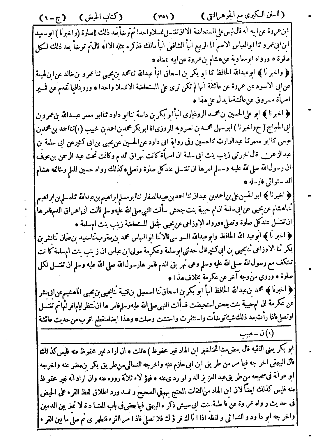 أبو بكر يعنى الفقيه قال بعض مشائخنا خر ابن الهاد غير محفظو) * قلت * ان اراد غير محفوظ عنه فليس كذلك فان البيهقى اخرجه فيما مر من طريق ابن ابى حازم عنه واخرجه النسائي من طريق بكر بن مضرعنه واخرجه أبو عوانة في صحيحه من طريق عبد العزيز الدر لو ردى عنه * فهؤلاء ثلاثة ورووه عنه وان اراد انه غير محفوظ منه فليس كذلك ايضا لان ابن الهاد من الثقات المحتج بهم في الصحيح وقد ورد اطلاق لفظ القرء على الحيض في حديث رواه عروة عن فاطمة بنت ابى حبيش ذكره البيهقى فيما بعضى في باب المعتادة لا تميز بين الدمين واخرجه أبو داود النسائي ولفظه إذا اتاك فلا تصلى فإذا مر القرء فتطهري ثم صلى ما بين القرء