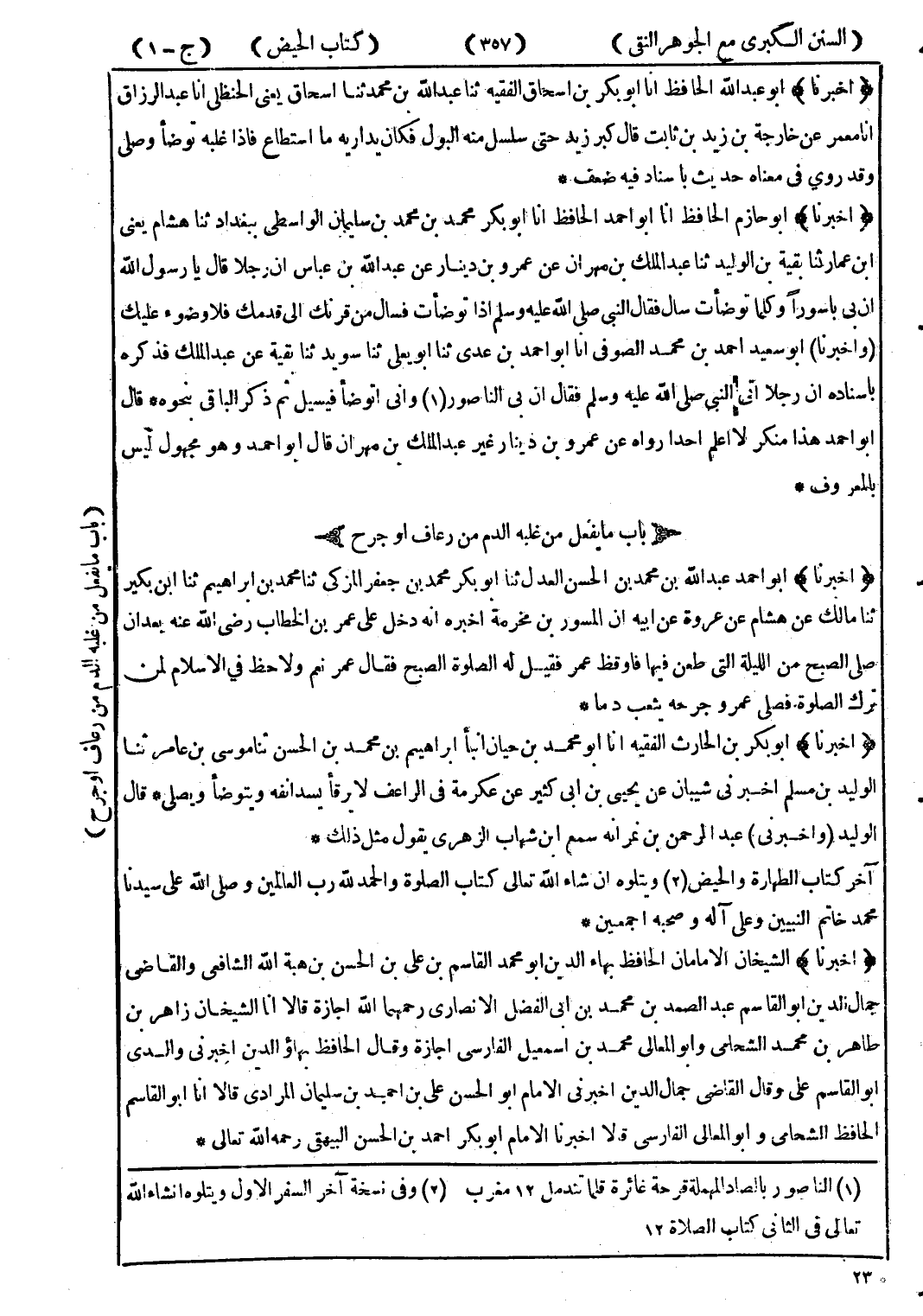 (1) الناصور بالصاد المهملة قرحة غائرة قلما تندمل 12 مغرب (2) وفى نسخة آخر السفر الاول ويتلوه ان شاء الله تعالى في الثاني كتاب الصلاة 12 (*)