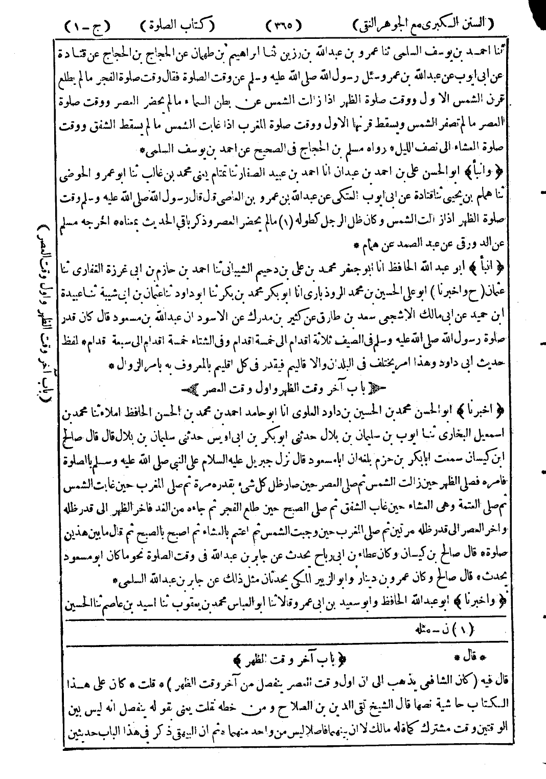 * قال * (باب آخر وقت الظهر) قال فيه (كان الشافعي يذهب إلى ان اول وقت العصر ينفصل من آخرو قت الظهر) * قلت * كان على هذا الكتاب حاشية نصها قال الشيخ تقى الدين بن الصلاح ومن خطه نقلت يعنى بقوله ينفصل انه ليس بين الوقتين وقت مشترك كما قاله مالك لا ان بينهما فاصلا ليس من واحد منهما * ثم ان البيهقى ذكر في هذا الباب حديثين