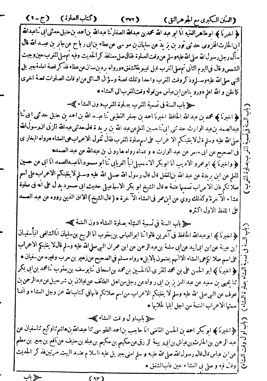 (باب السنة في تسمية المغرب بصلوة المغرب دون العشاء)