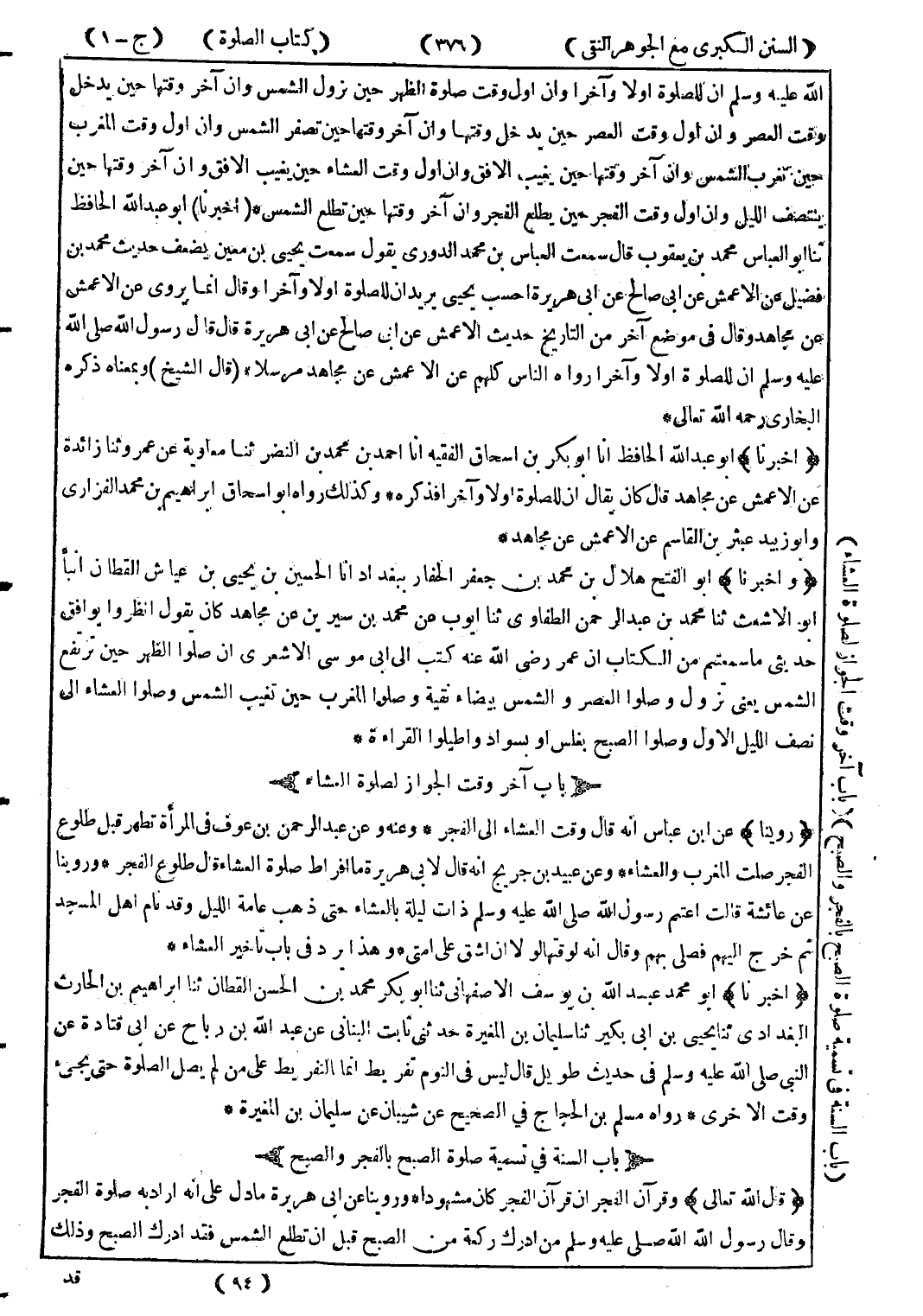 (باب السنة في تسمية صلوة الصبح بالفجر والصبح) (قال الله تعالى) وقرآن الفجر ان قرآن الفجر كان مشهودا.