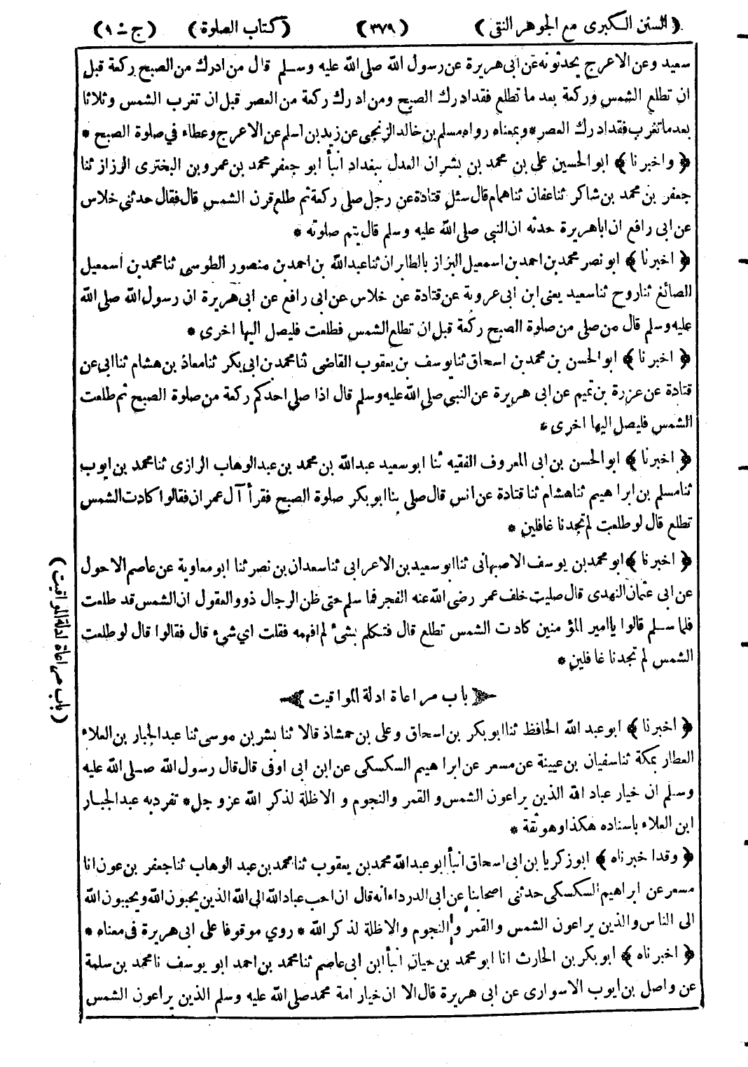(أخبرناه) أبو بكر بن الحارث انا أبو محمد بن حيان انبأ ابن أبي عاصم ثنا محمد بن أحمد أبو يوسف نا محمد بن سلمة عن واصل بن أيوب الاسواري عن أبي هريرة قال الا ان خيار امة محمد صلى الله عليه وسلم الذين يراعون الشمس