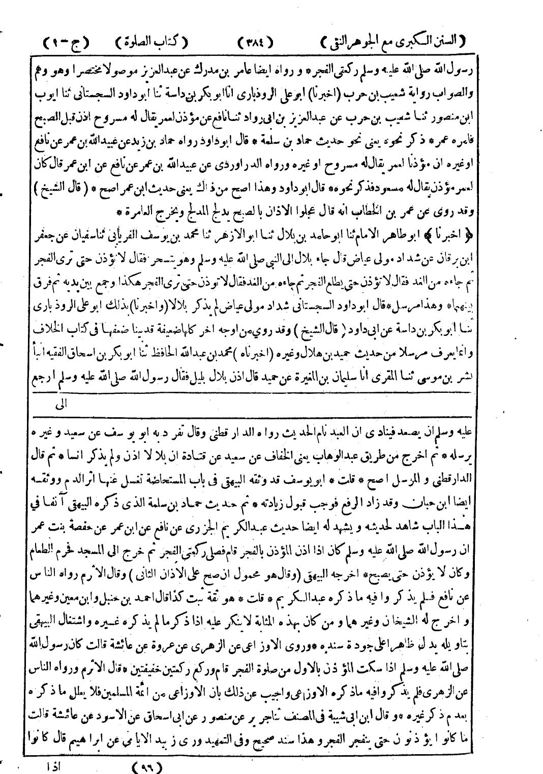 عليه وسلم ان يصعد فينادى ان العبد نام الحديث رواه الدارقطني وقال تفرد به أبو يوسف عن سعيد وغيره يرسله * ثم اخرج من طريق عبد الوهاب يعنى الخفاف عن سعيد عن قتادة ان بلا لا اذن ولم يذكر انسا * ثم قال الدارقطني والمرسل اصح * قلت * أبو يوسف قدوقه البيهقى في باب المستحاضة تغسل عنها اثر الدم ووثقه ايضا ابن حبان وقد زاد الرفع فوجب زيادته * ثم حديث حماد بن سلمة الذى ذكره البيهقى آنفا في هذا الباب شاهد لحديثه ويشهد له ايضا حديث عبد الكريم الجزرى عن نافع عن ابن عمر عن حفصة بنت عمر ان رسول الله صلى الله عليه وسلم كان إذا اذن المؤذن بالفجر قام فصلى ركعتي الفجر ثم خرج إلى المسجد فحرم الطعام وكان لا يؤذى حتى يصح * اخرجه البيهقى (وقال هو محمول ان صح على الاذان الثاني) وقال الاثرم رواه الناس عن نافع فلم يذكر وافيه ما ذكره عبد الكريم * قلت * هو ثقة ثبت كذا قال احمد بن حنبل وابن معين وغيرهما واخرج له الشيخان وغيرهما ومن كان بهذه المثابة لا ينكر عله إذا ذكر ما لم يذكره غيره واشتغال البيهقى بتأويله يدل ظاهرا على جودة سنده * وروى الاوزاعي عن الزهي عن عروة عن عائشة قالت كان رسول الله صلى الله عليه وسلم إذا سكت المؤذن بالاول من صلوة الفجر قام وركع ركعتن خفيفتين * قال الاثرم ورواه الناس عن الزهري فلم يذكروا فيه ما ذكره الاوزاعي واجيب عن ذلك بان الاوزاعي من ائمة المسلمين فلا يعلل ما ذكره بعدم ذكر غيره * وقال ابن ابى شيبة في المصنف ثناجر ير عن منصور عن ابى اسحاق عن الاسود عن عائشة قالت ما كانوا يؤذنون حتى ينفجر الفجر وهذا سند صحيح وفى التمهيد ورى زبيد الايامى عن ابراهيم قال كانوا