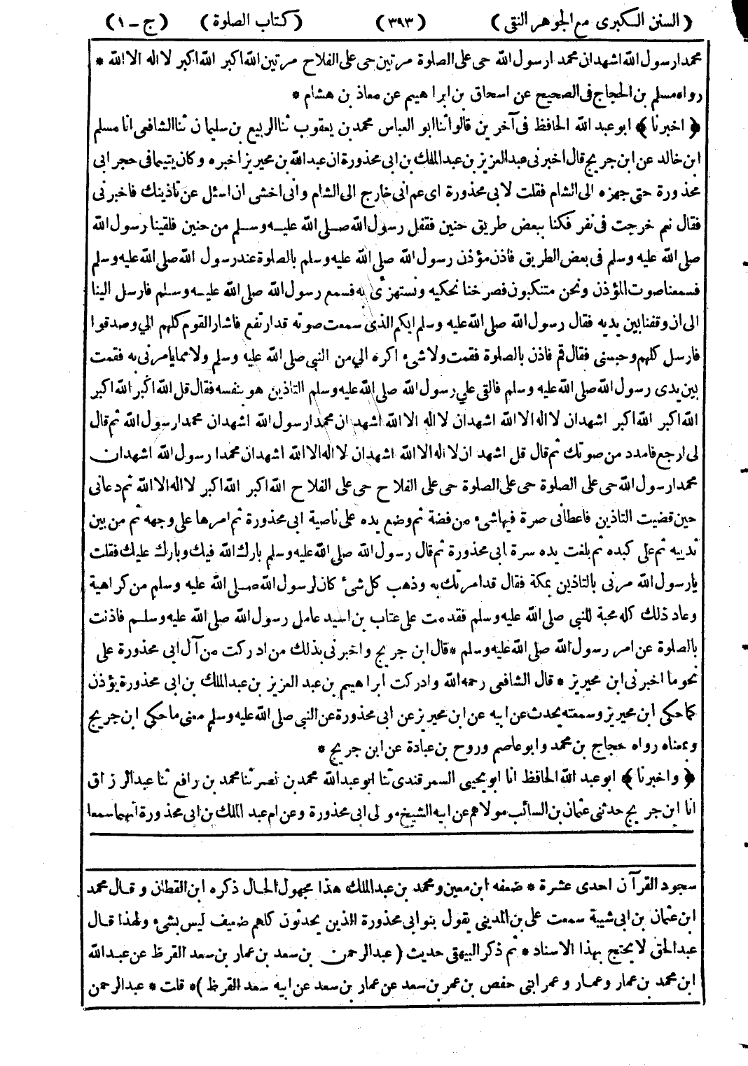 سجود القرآن احدى عشرة * ضعفه ابن معين ومحمد بن عبد الملك * هذا مجهول الحال ذكره ابن القطان وقال محمد ابن عثمان بن ابى شيبة سمعت على بن المدينى يقول بنو ابى محذورة الذين يحدثون كلهم ضعيف ليس بشئ ولهذا قال عبد الحق لا يحتج بهذا الاسناد * ثم ذكر البيهقى حديث (عبد الرحمن بن سعد بن عمار بن سعد القرظ عن عبد الله ابن محمد بن عمار وعمار عمر ابني خفص بن عمر بن سعد عن عمار بن سعد القرظ عن عبد الله ابن محمد بن عمار وعمار وعمر ابني حفص بن عمر بن سعد عن عمار بن سعد عن ابيه سعد القرظ) * قلت * عبد الرحمن