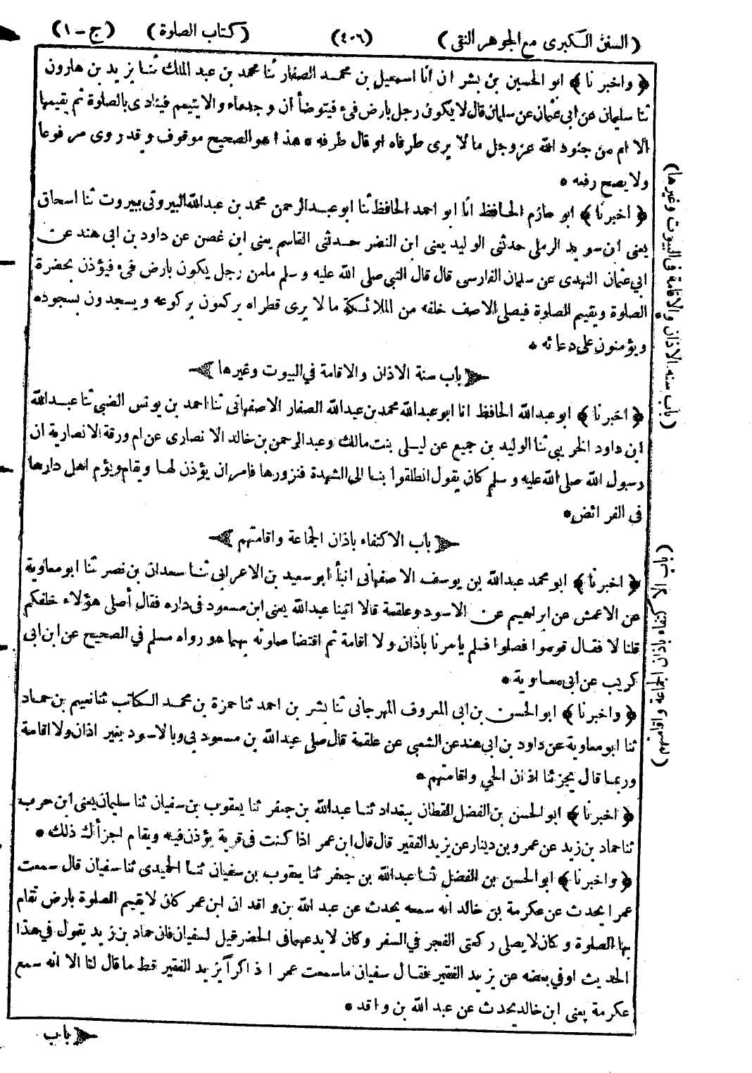(أخبرنا) أبو محمد عبد الله بن يوسف الاصفهاني انبأ أبو سعيد بن الاعرابي ثنا سعدان بن نصر ثنا أبو معاوية عن الاعمش عن ابراهيم عن الاسود وعلقمة قالا اتينا عبد الله يعني ابن مسعود في داره فقال أصلى هؤلاء خلفكم قلنا لا فقال قوموا فصلوا فلم يامرنا باذان ولا اقامة ثم اقتضا صلوته بهما.