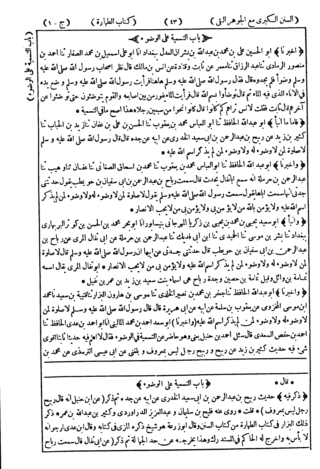 (ذكر فيه) حديث ربيح بن عبد الرحمن بن ابى سعيد الخدرى عن ابيه عن جده ثم ذكر (عن ابن حنبل انه قال ربيح رجل ليس بمعروف) * قلت * روى عنه فليح بن سليمان وعبد العزيز الدراوردى وكثير بن عبد الله بن عمر * ذكر ذلك البزار في كتاب الطهارة من كتاب السنن وقال أبو زرعة هو شيخ ذكره المزى في كتابه وقال ابن عدى ارجوانه لا بأس واخرج له الحاكم في المستدرك وهذا يخرجه عن حد الجهالة ثم ذكر (عن ابى ثقال قال سمعت رباح