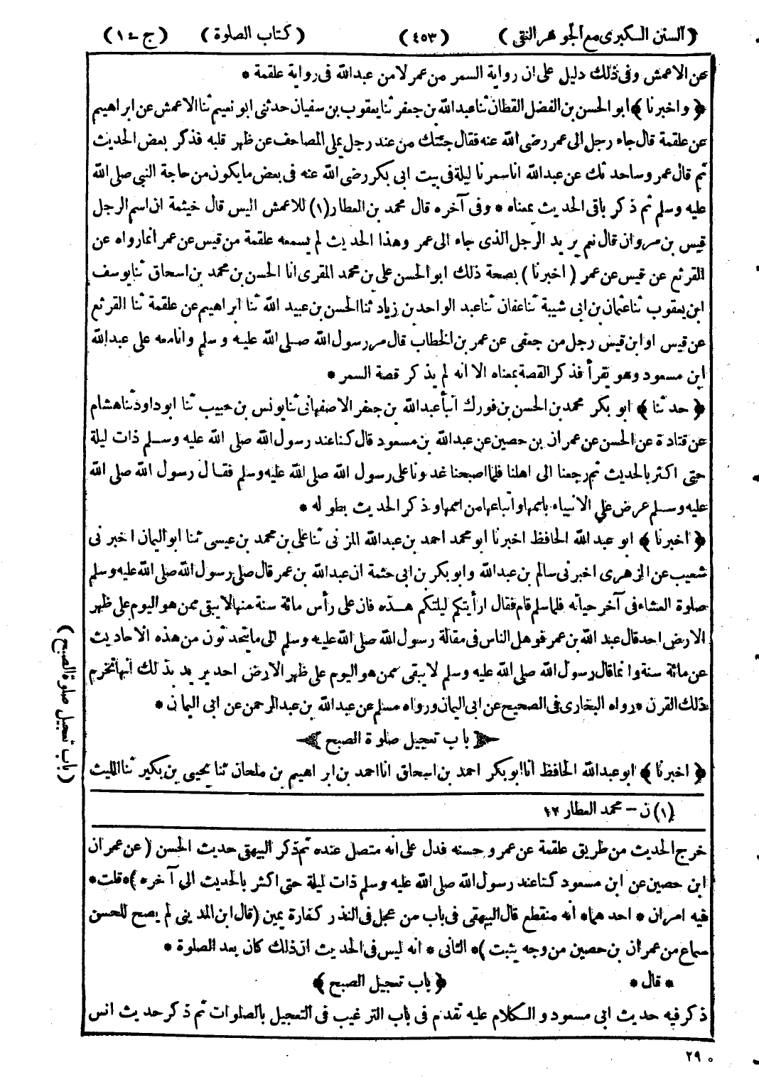خرج الحديث من طريق علقمة عن عمرو حسنه فدل على انه متصل عنده ثم ذكر البيهقى حديث الحسن (عن عمران ابن حصين عن ابن مسعود كناعند رسول الله صلى الله عليه وسلم ذات ليلة حتى اكثر بالحديث إلى آخره * قلت * فيه امران * احدهما * انه منقطع قال البيهقى في باب من عجل في النذر كفارة يمين (قال ابن المدينى لم يصح للحسن سماع عن عمران بن حصين بن وجه يثبت) * الثاني * انه ليس في الحديث ان ذلك كان بعد الصلوة *