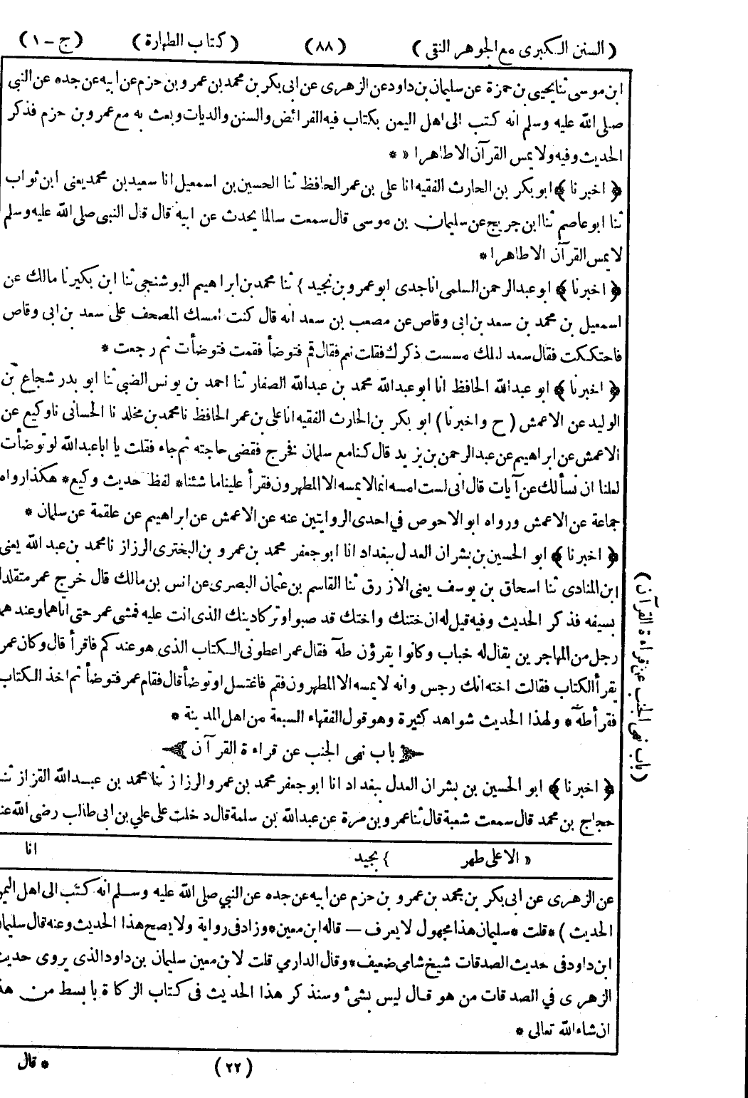 عن الزهري عن ابى بكر بن محدم بن عمرو بن حزم عن ابيه عن جده عن النبي صلى الله عليه وسلم انه كتب إلى اهل اليمن الحديث) * قلت * سليمان هذا مجهول لا يعرف قاله ابن معين * وزاد في رواية ولا يصح هذا الحديث وعنه قال سليمان ابن داود في حديث الصدقات شيخ شامى ضعيف * وقال الدارمي قلت لابن معين سليمان بن داود الذى يروى حديث الزهري في الصدقات من هو قال ليس بشئ وسنذكر هذا الحديث في كتاب الزكاة بابسط من هذا ان شاء الله تعالى *