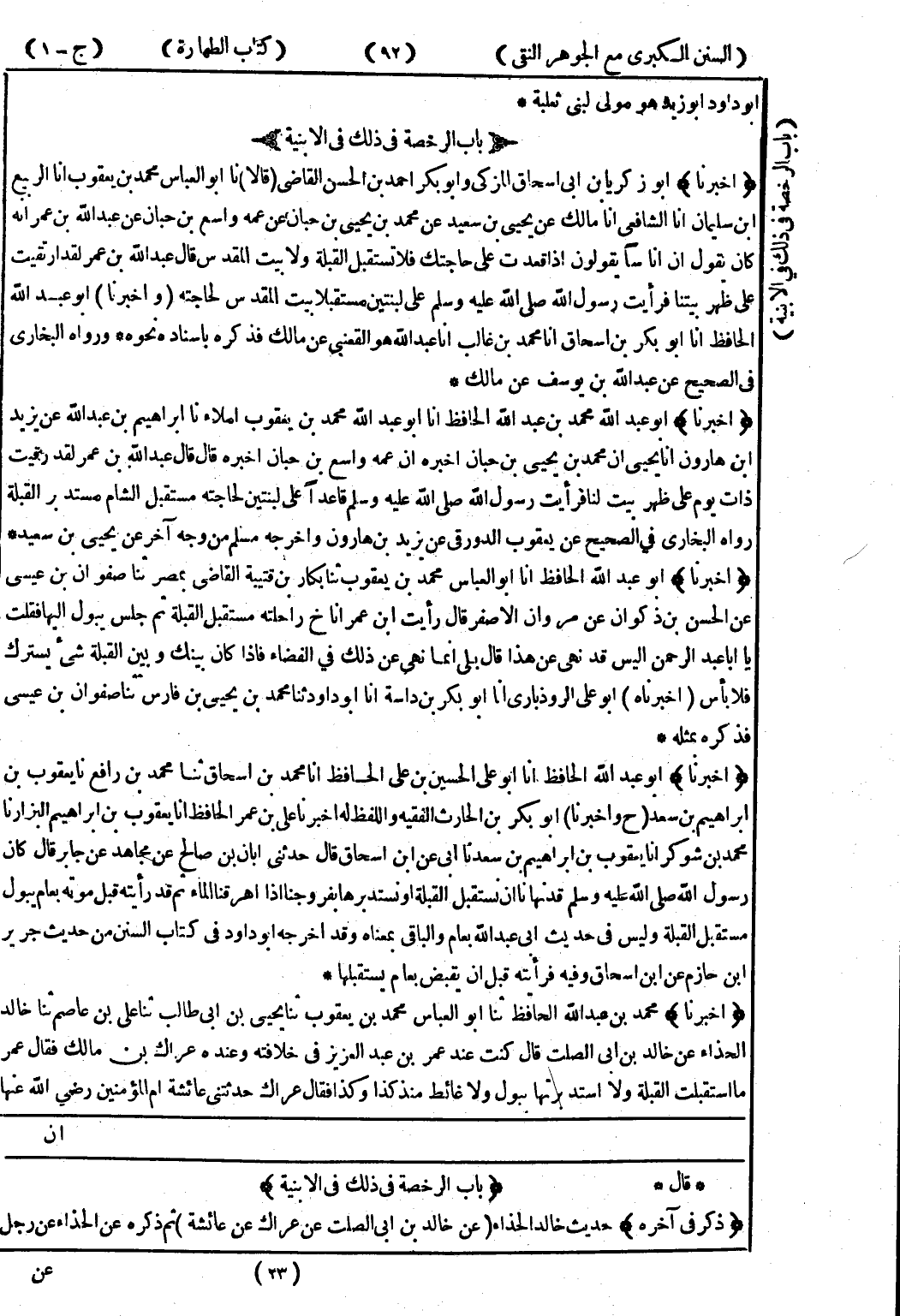 * قال * (باب الرخصة في ذلك في الابنية) (ذكر في آخره) حديث خالد الحذاء (عن خالد بن ابى الصلت عن عراك عن عائشة) ثم ذكره عن الحذاء عن رجل