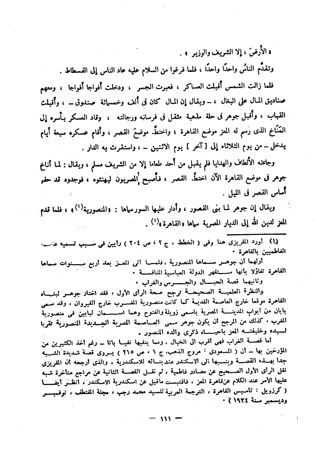 وجاءته الألطاف والهدايا فلم يقبل من أحد طعاما إلا من الشريف مسلم، ويقال: لما أناخ جوهر في موضع القاهرة الآن اختط القصر، فأصبح المصريون ليهنئوه، فوجدوه قد حفر أساس القصر في الليل.