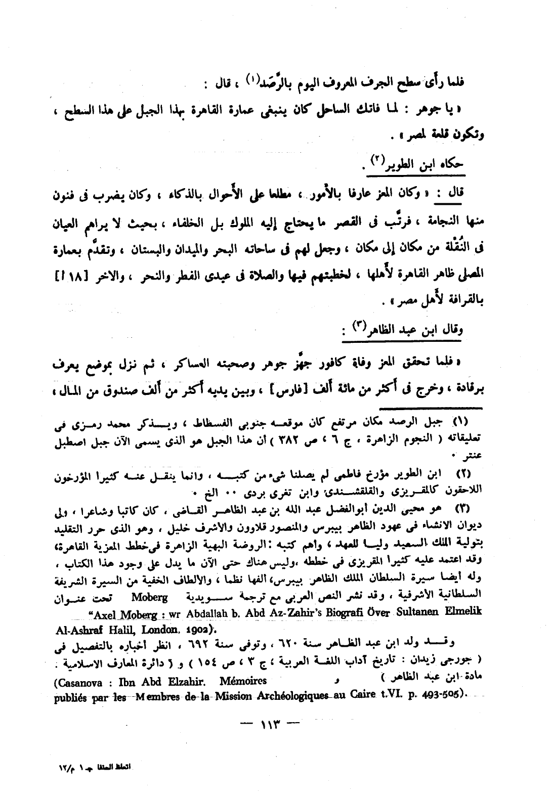 فلما رأى سطح الجرف المعروف اليوم بالرصد، قال: يا جوهر: لما فاتك الساحل كان ينبغي عمارة القاهرة بهذا الجبل على هذا السطح، وتكون قلعة لمصر.