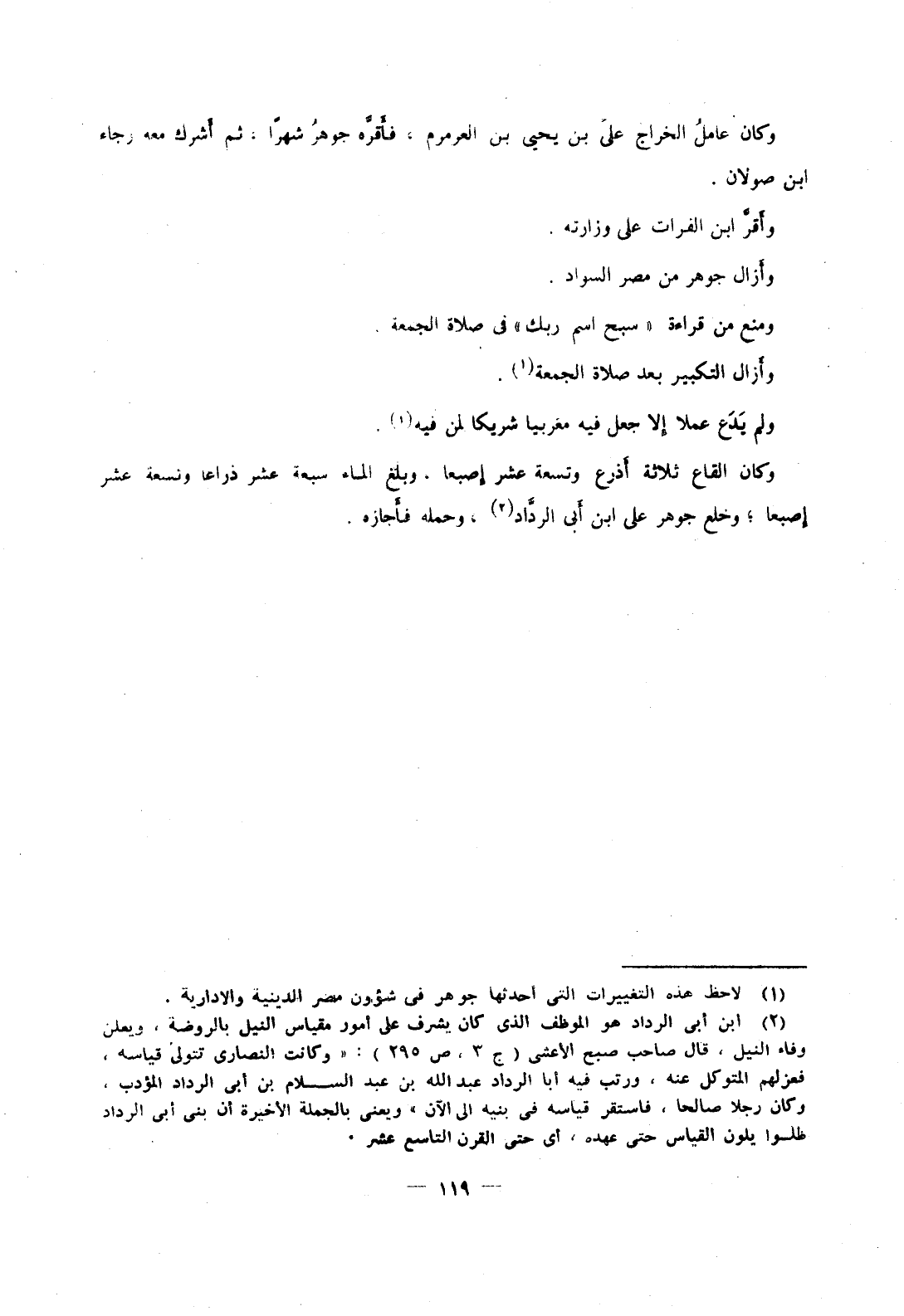 وكان القاع ثلاثة أذرع وتسعة عشر إصبعا، وبلغ الماء سبعة عشر ذراعا وتسعة عشر إصبعا؛ وخلع جوهر علي ابن أبي الرداد، وحمله فأجازه.