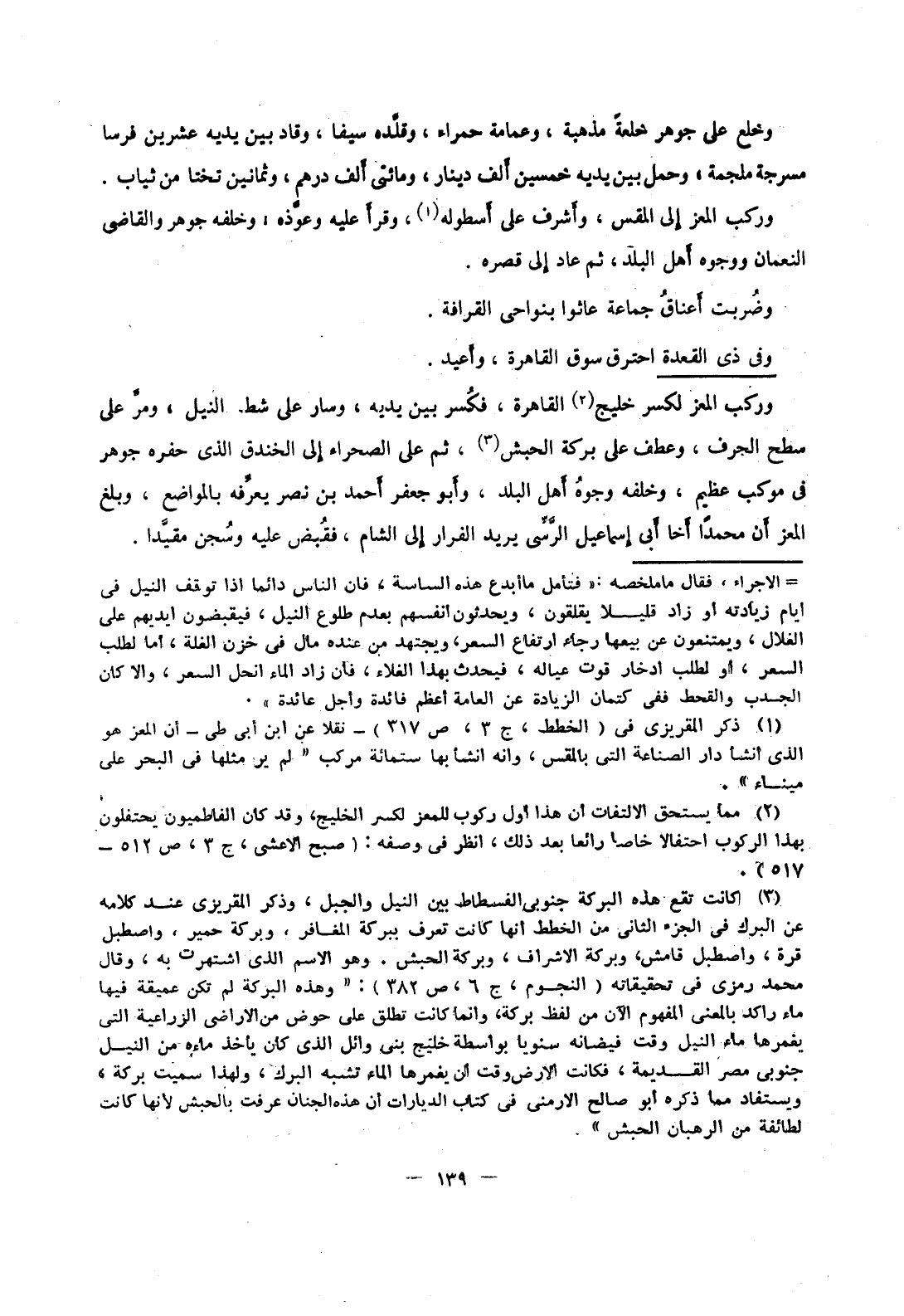 وركب المعز لكسر خليج القاهرة، فكسر بين يديه، وسار على شط النيل، ومر على سطح الجرف، وعطف على بركة الحبش، ثم على الصحراء إلى الخندق الذي حفره جوهر في موكب عظيم، وخلفه وجوه أهل البلد، وأبو جعفر أحمد بن نصر يعرفه بالمواضع، وبلغ المعز أن محمداً أخا أبي إسماعيل الرسي يريد الفرار إلى الشام، فقبض عليه وسجن مقيدا.