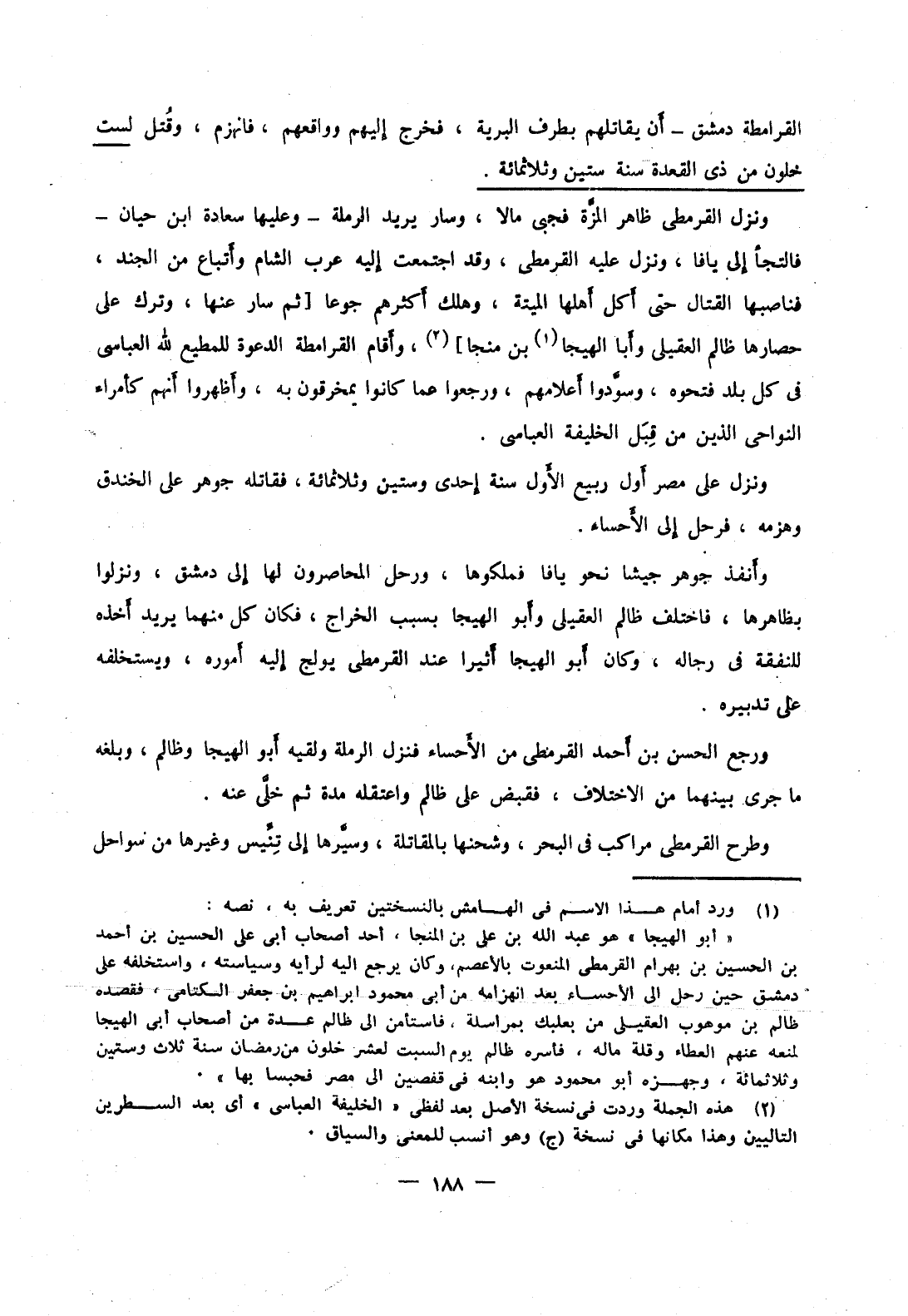 ورجع الحسن بن أحمد القرمطي من الأحساء فنزل الرملة ولقيه أبو الهيجا وظالم، وبلغه ما جرى بينهما من الاختلاف، فقبض على ظالم واعتقله مدة ثم خلى عنه.