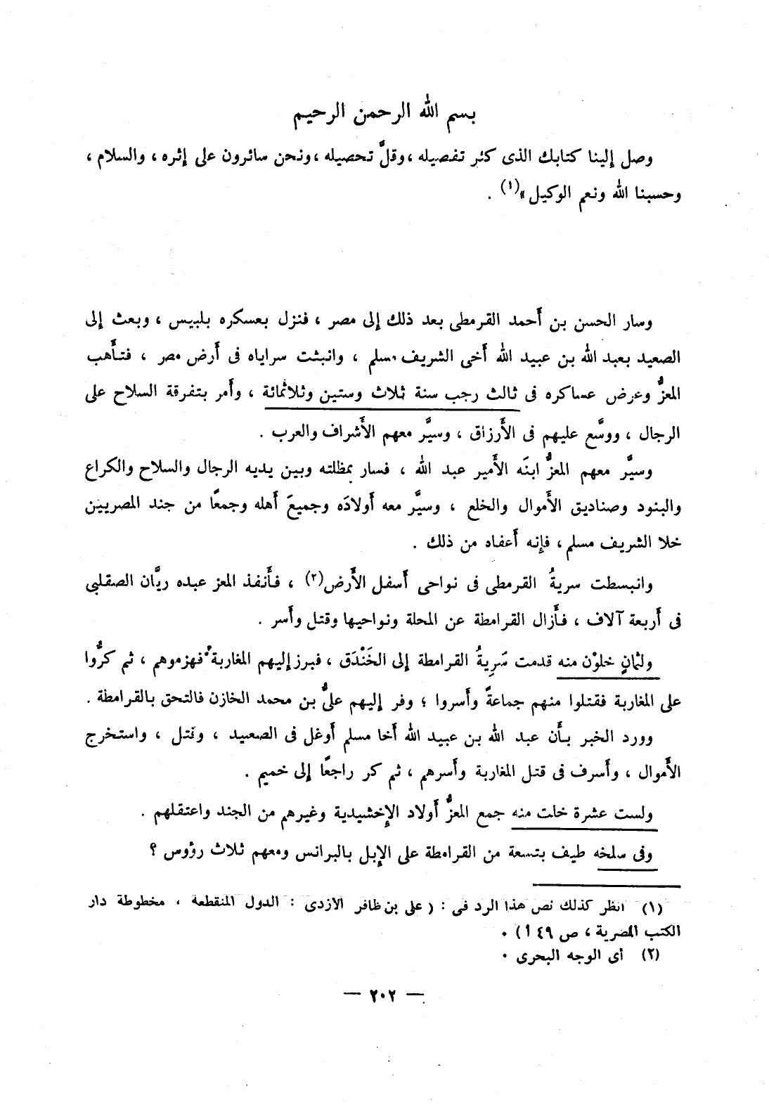 بسم الله الرحمن الرحيم وصل إلينا كتابك الذي كثر تفصيله، وقل تحصيله، ونحن سائرون على إثره، والسلام، وحسبنا الله ونعم الوكيل.