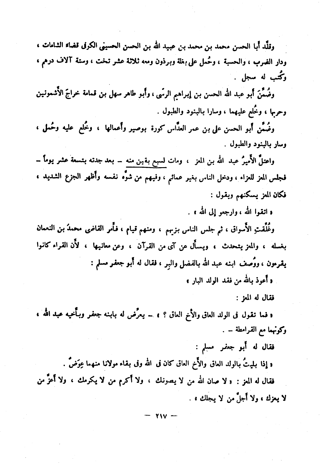 فقال له أبو جعفر مسلم: إذا بليت بالولد العاق والأخ العاق كان في الله وفي بقاء مولانا منهما عوض.