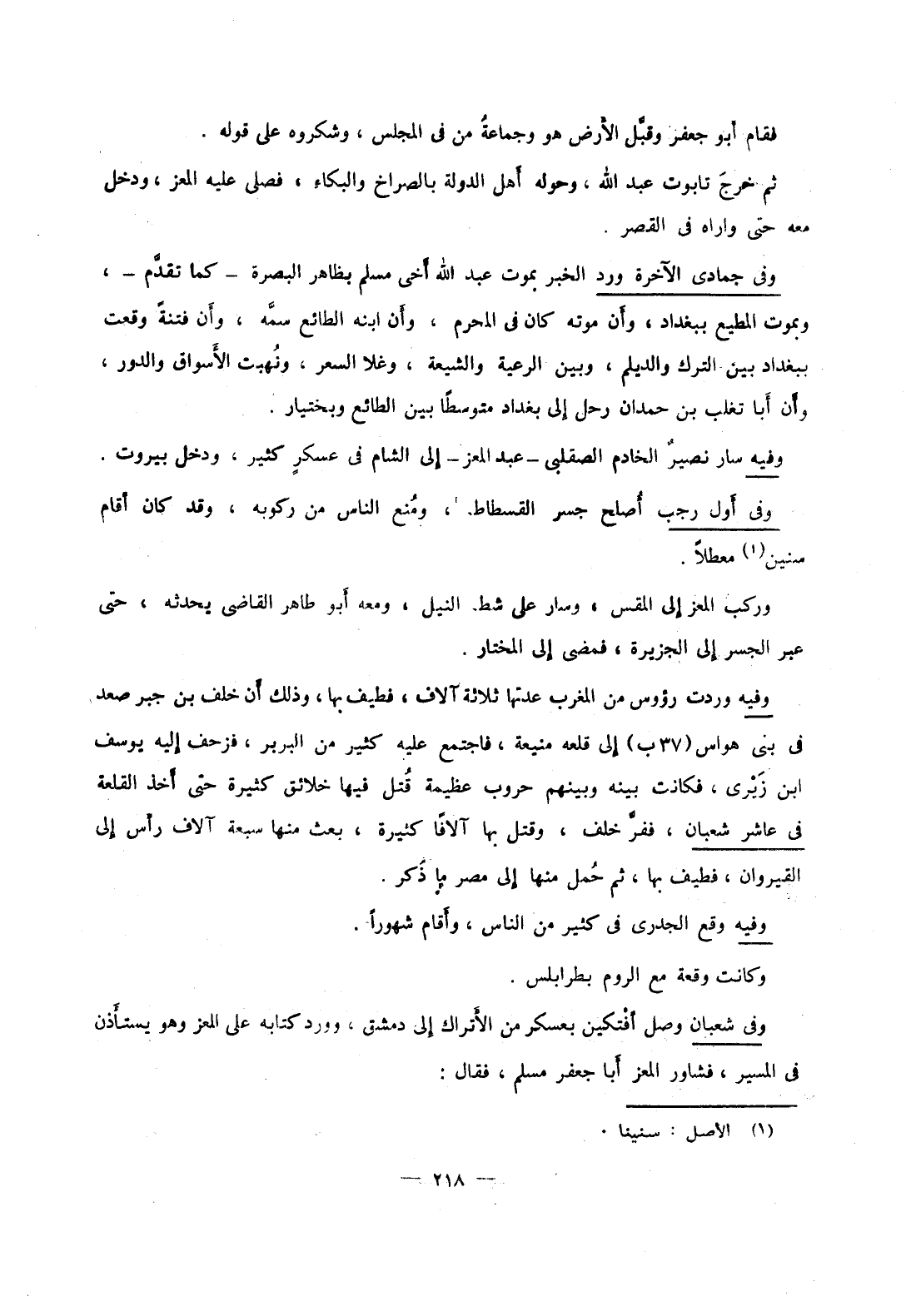 وفي شعبان وصل أفتكين بعسكر من الأتراك إلى دمشق، وورد كتابه على المعز وهو يستأذن في المسير، فشاور المعز أبا جعفر مسلم، فقال: