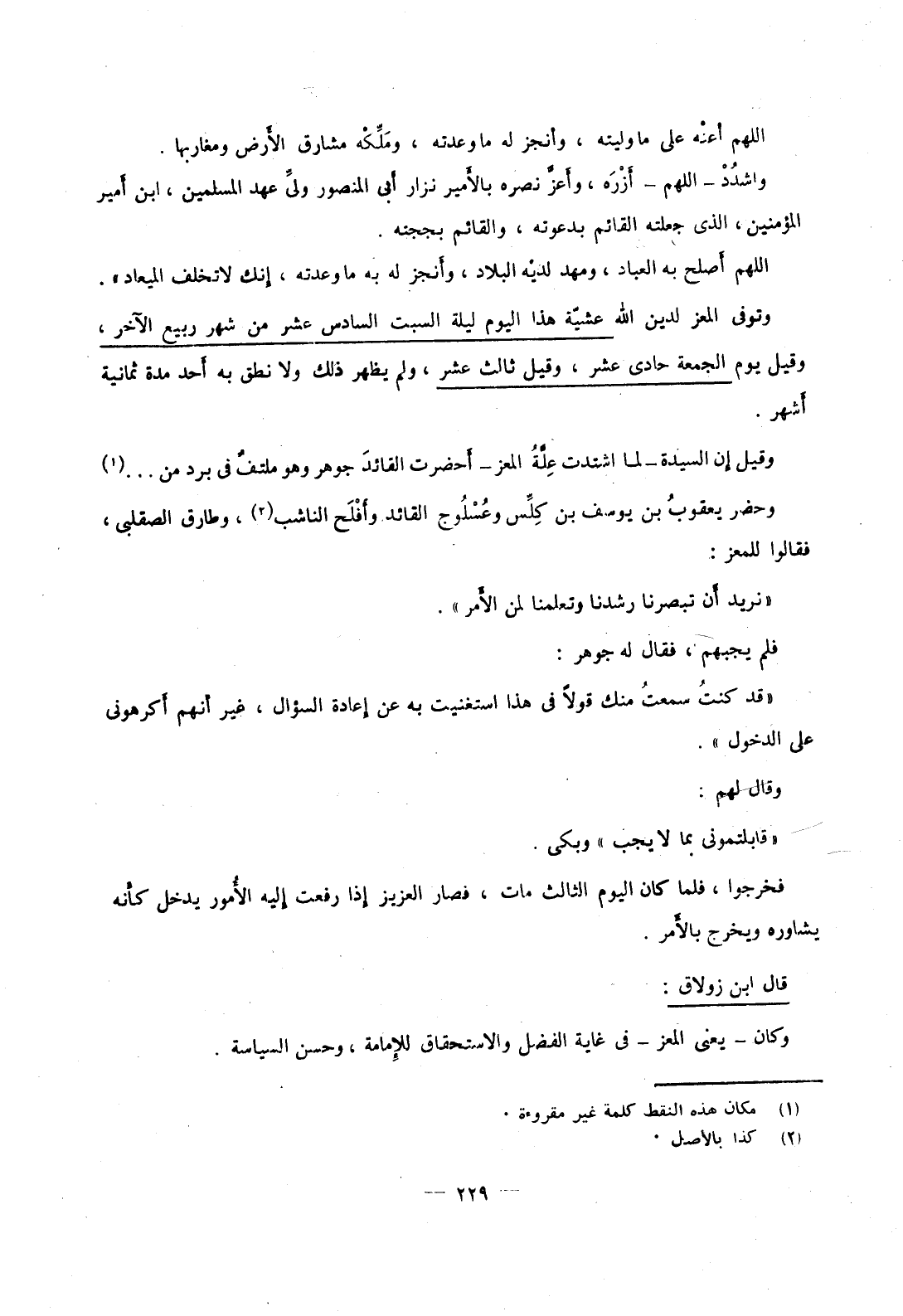 وقيل إن السيدة لما اشتدت علة المعز أحضرت القائد جوهر وهو ملتف في برد من ...