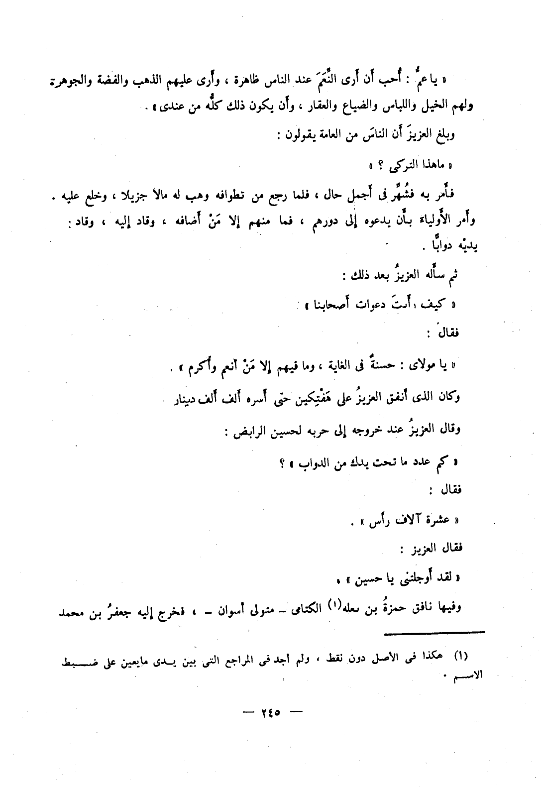 ثم سأله العزيز بعد ذلك: كيف رأيت دعوات أصحابنا فقال: يا مولاي: حسنة في الغاية، وما فيهم إلا من أنعم وأكرم.