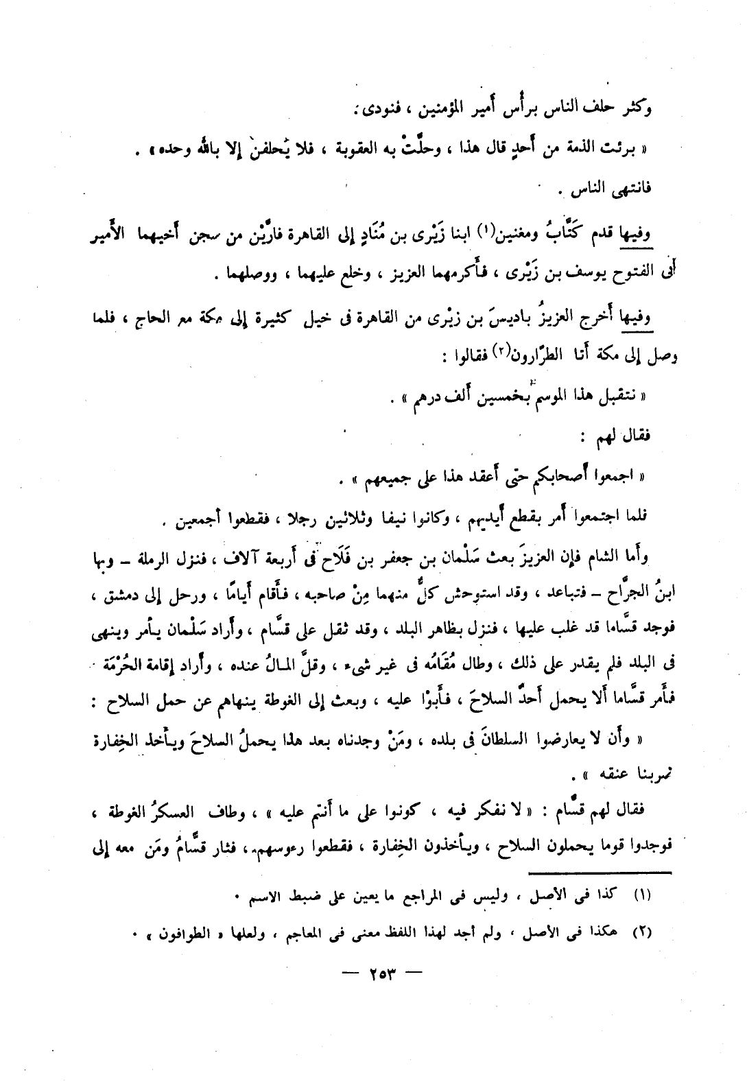 وكثر حلف الناس برأس أمير المؤمنين، فنودي: برئت الذمة من أحد قال هذا، وحلت به العقوبة، فلا يحلفن إلا بالله وحده.