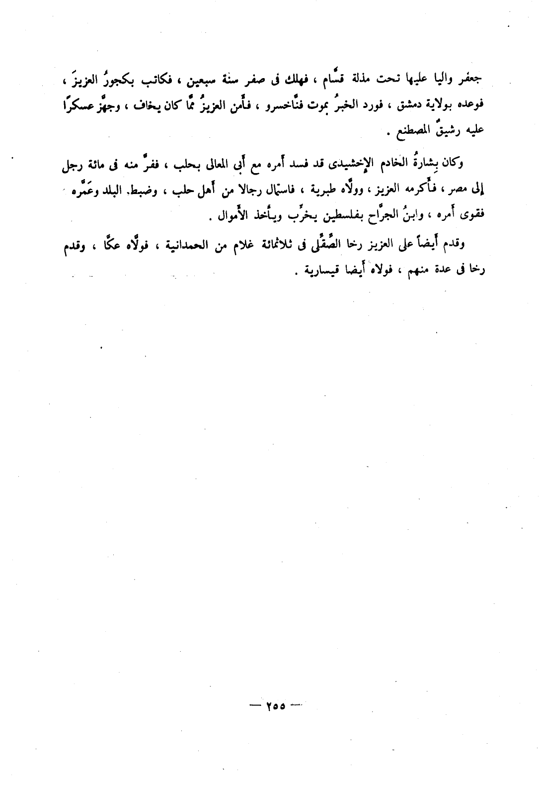 وقدم أيضاً على العزيز رخا الصقلي في ثلاثمائة غلام من الحمدانية، فولاه عكا، وقدم رخا في عدة منهم، فولاه أيضاً قيسارية.