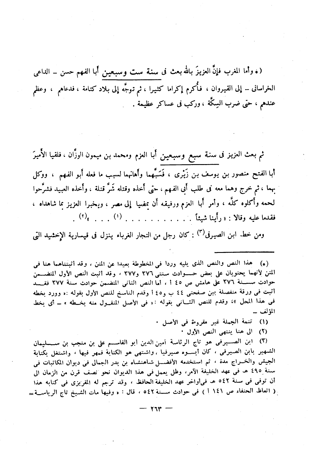 ثم بعث العزيز في سنة سبع وسبعين أبا العزم ومحمد بن ميمون الوزان، فلقيا الأمير أبا الفتح منصور بن يوسف بن زيرى، فسبهما وأهانهما لسبب ما فعله أبو الفهم، ووكل بهما، ثم خرج وهما معه في طلب أبي الفهم، حتى أخذه وقتله شر قتلة، وأخذه العبيد فشرحوا لحمه وأكلوا كله، وأمر أبا العزم ورفيقه أن يمضيا إلى مصر، ويخبرا العزيز بما شاهداه، فقدما عليه وقالا: رأينا شيئاً...............