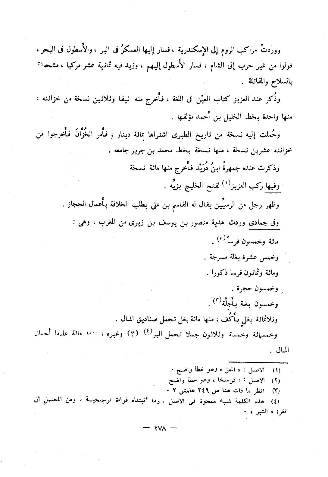 وثلاثمائة بغل بأكف، منها مائة بغل تحمل صناديق المال.