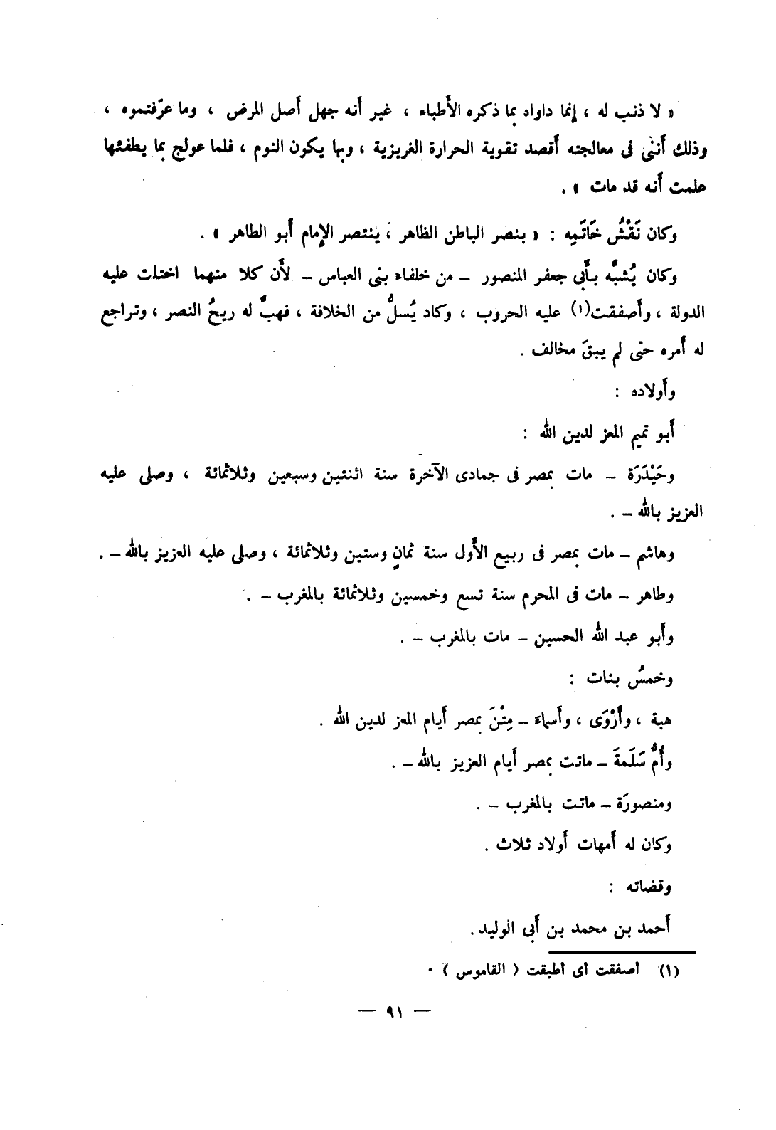 وخمس بنات: هبة، وأروى، وأسماء متن بمصر أيام المعز لدين الله.