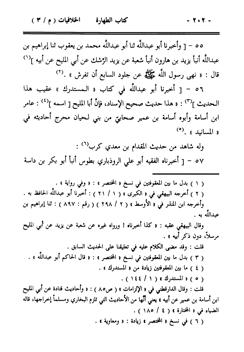 56- [أخبرنا أبو عبد الله في كتاب ((المستدرك)) عقيب هذا الحديث]: ((هذا حديث صحيح الإسناد، فإن أبا المليح [اسمه]: عامر ابن أسامة وأبوه أسامة بن عمير صحابي من بني لحيان مخرج أحاديثه في ((المسانيد)).
