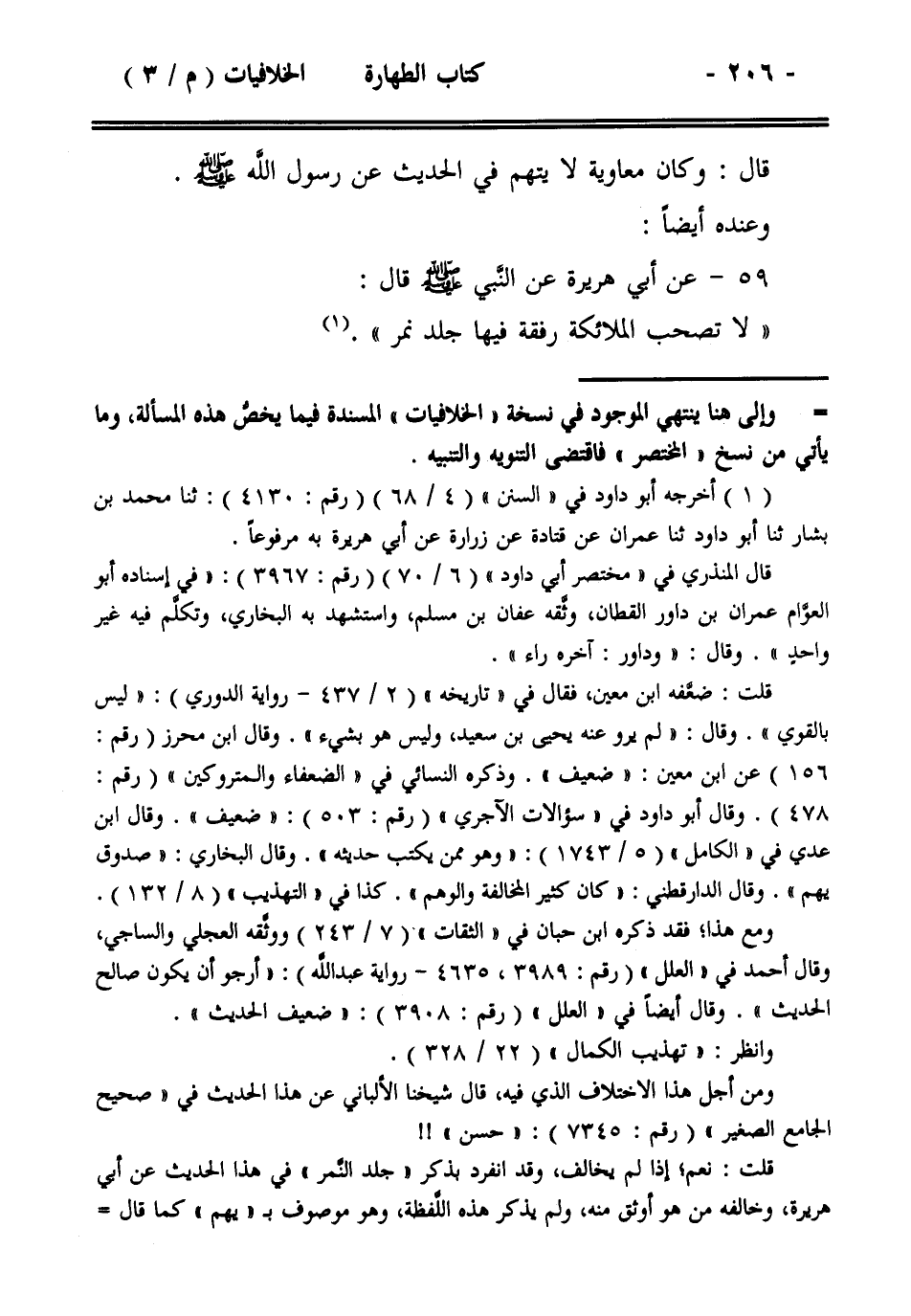 ((لا تصحب الملائكة رفقة فيها جلد نمر)).