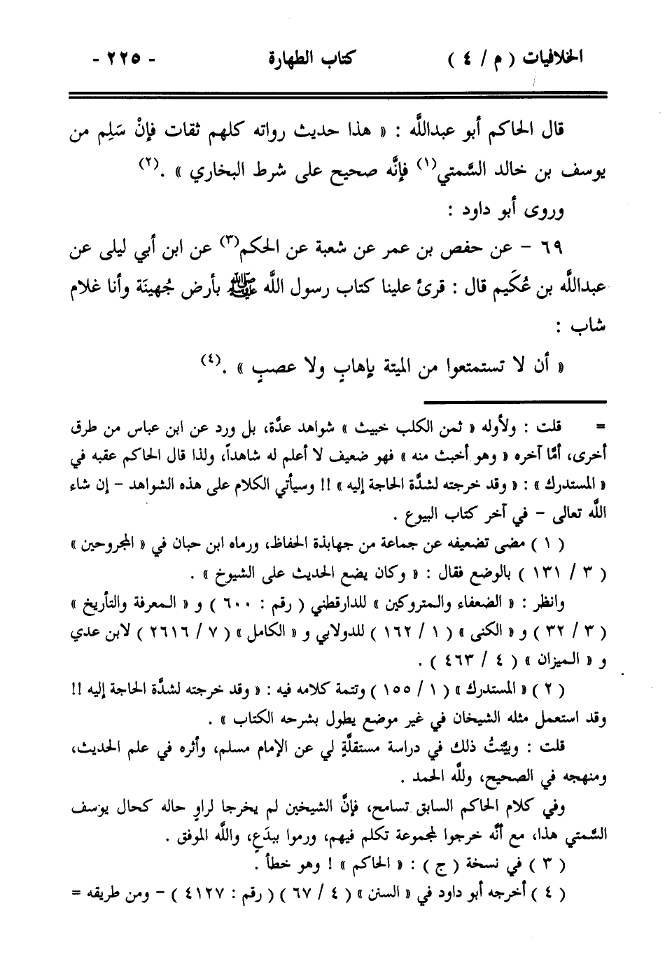 قال الحاكم أبو عبد الله: ((هذا حديث رواته كلهم ثقات فإن سلم من يوسف بن خالد السمتي فإنه صحيح على شرط البخاري)).