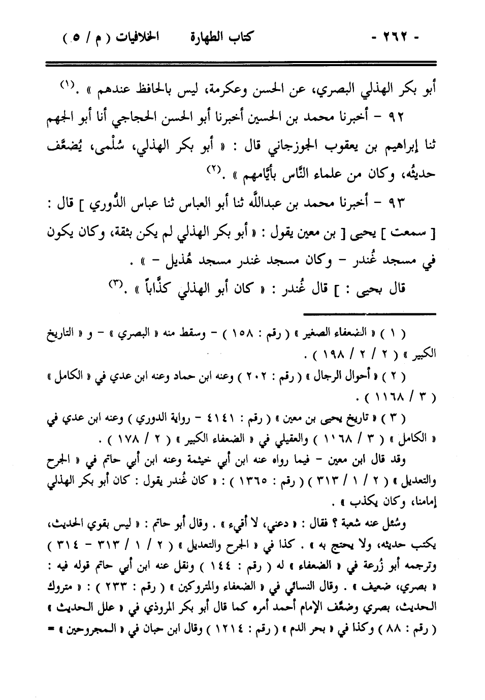 92- أخبرنا محمد بن الحسين أخبرنا أبو الحسن الحجاجي أنا أبو الجهم ثنا إبراهيم بن يعقوب الجوزجاني قال: ((أبو بكر الهذلي، سلمى، يضعف حديثه، وكان من علماء الناس بأيامهم)).