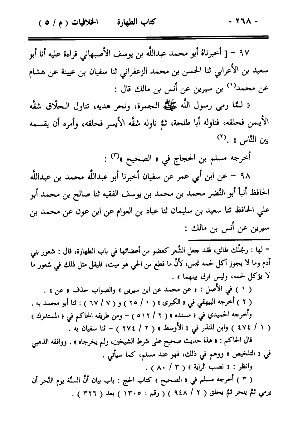 98- عن ابن أبي عمر عن سفيان أخبرنا أبو عبد الله محمد بن عبد الله الحافظ أنبأ أبو النضر محمد بن محمد بن يوسف الفقيه ثنا صالح بن محمد أبو علي الحافظ ثنا سعيد بن سليمان ثنا عباد بن العوام عن ابن عون عن محمد بن سيرين عن أنس بن مالك: