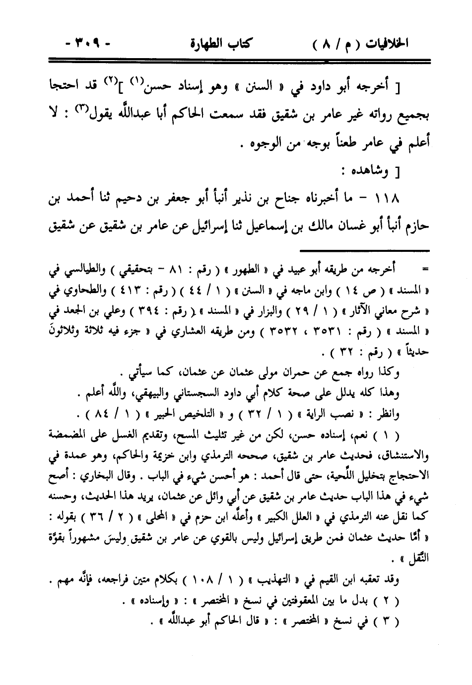 [أخرجه أبو داود في ((السنن)) وهو إسناد حسن] قد احتجا بجميع رواته غير عامر بن شقيق فقد سمعت الحاكم أبا عبد الله يقول: لا أعلم في عامر طعناً بوجه من الوجوه.
