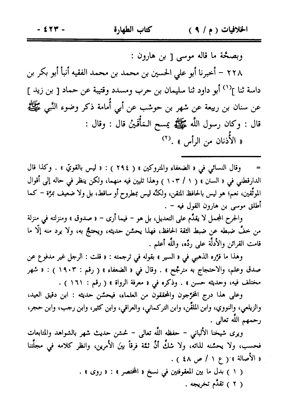 228- أخبرنا أبو علي الحسين بن محمد بن محمد الفقيه أنبأ أبو بكر بن داسة ثنا] أبو داود ثنا سليمان بن حرب ومسدد وقتيبة عن حماد [بن زيد] عن سنان بن ربيعة عن شهر بن حوشب عن أبي أمامة ذكر وضوء النبي صلى الله عليه وسلم قال: وكان رسول الله صلى الله عليه وسلم يمسح المأقين قال: وقال: