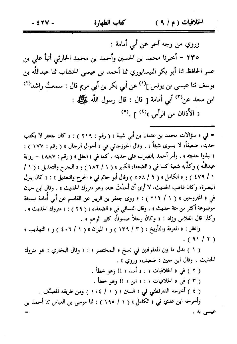 235- أخبرنا محمد بن الحسين وأحمد بن محمد الحارثي أنبأ علي بن عمر الحافظ ثنا أبو بكر النيسابوري ثنا أحمد بن عيسى الخشاب ثنا عبد الله بن يوسف ثنا عيسى بن يونس] عن أبي بكر بن أبي مريم قال: سمعت راشد ابن سعد عن أبي أمامة [قال: قال رسول الله صلى الله عليه وسلم :