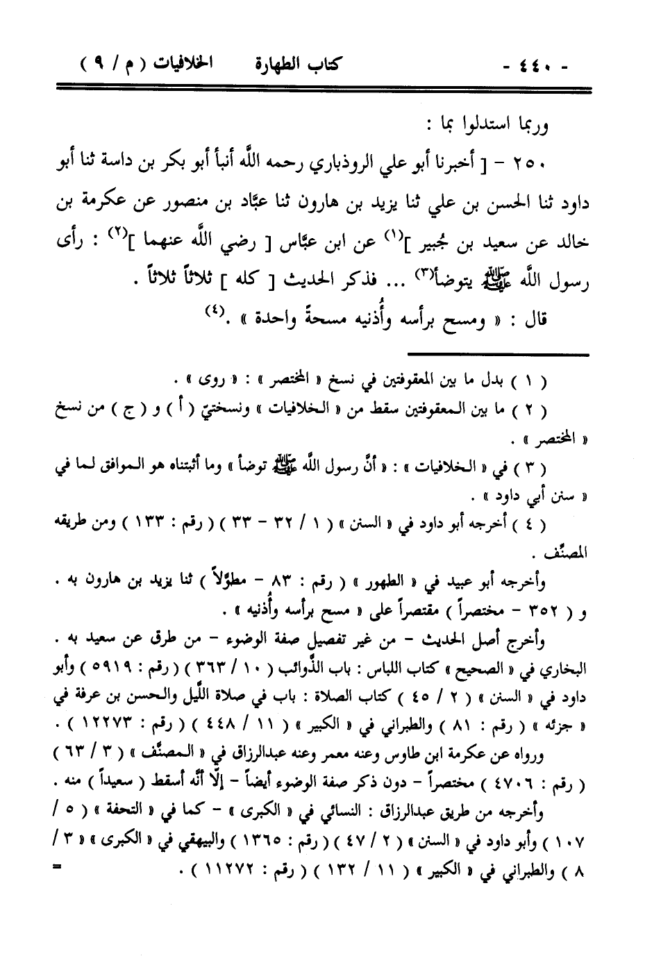 250- [أخبرنا أبو علي الروذباري رحمه الله أنبأ أبو بكر بن داسة ثنا أبو داود ثنا الحسن بن علي ثنا يزيد بن هارون ثنا عباد بن منصور عن عكرمة بن خالد عن سعيد بن جبير] عن ابن عباس [رضي الله عنهما]: رأى رسول الله صلى الله عليه وسلم يتوضأ .. .. فذكر الحديث [كله] ثلاثاً ثلاثاً.
