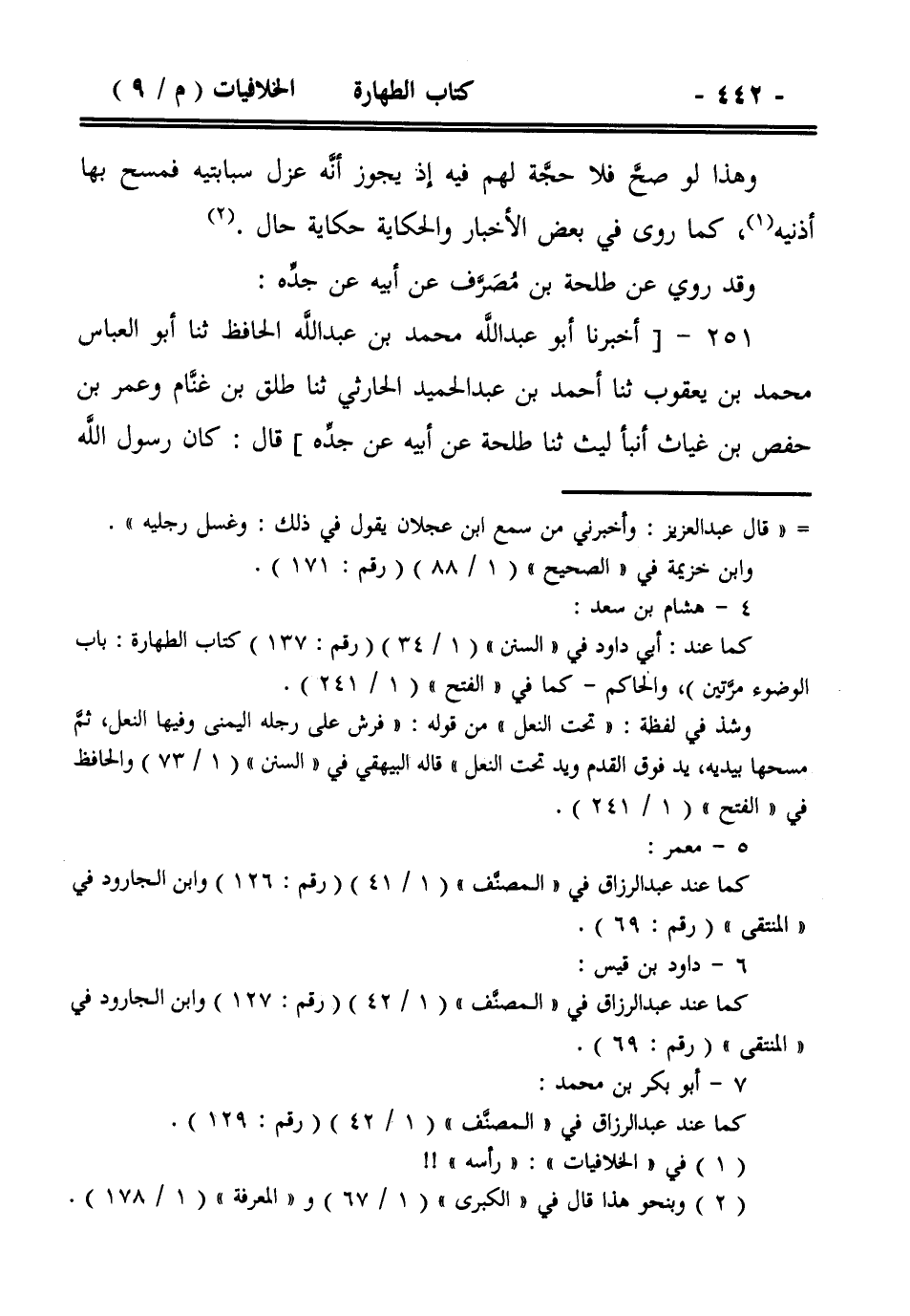 251- [أخبرنا أبو عبد الله محمد بن عبد الله الحافظ ثنا أبو العباس محمد بن يعقوب ثنا أحمد بن عبد الحميد الحارثي ثنا طلق بن غنام وعمر بن حفص بن غياث أنبأ ليث ثنا طلحة عن أبيه عن جده] قال: كان رسول الله
