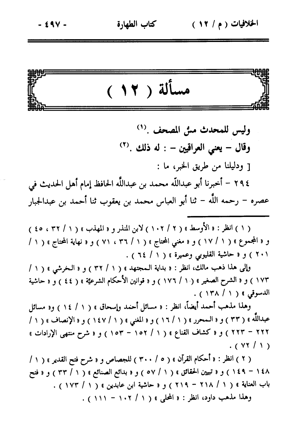 مسألة (12): وليس للمحدث مس المصحف.